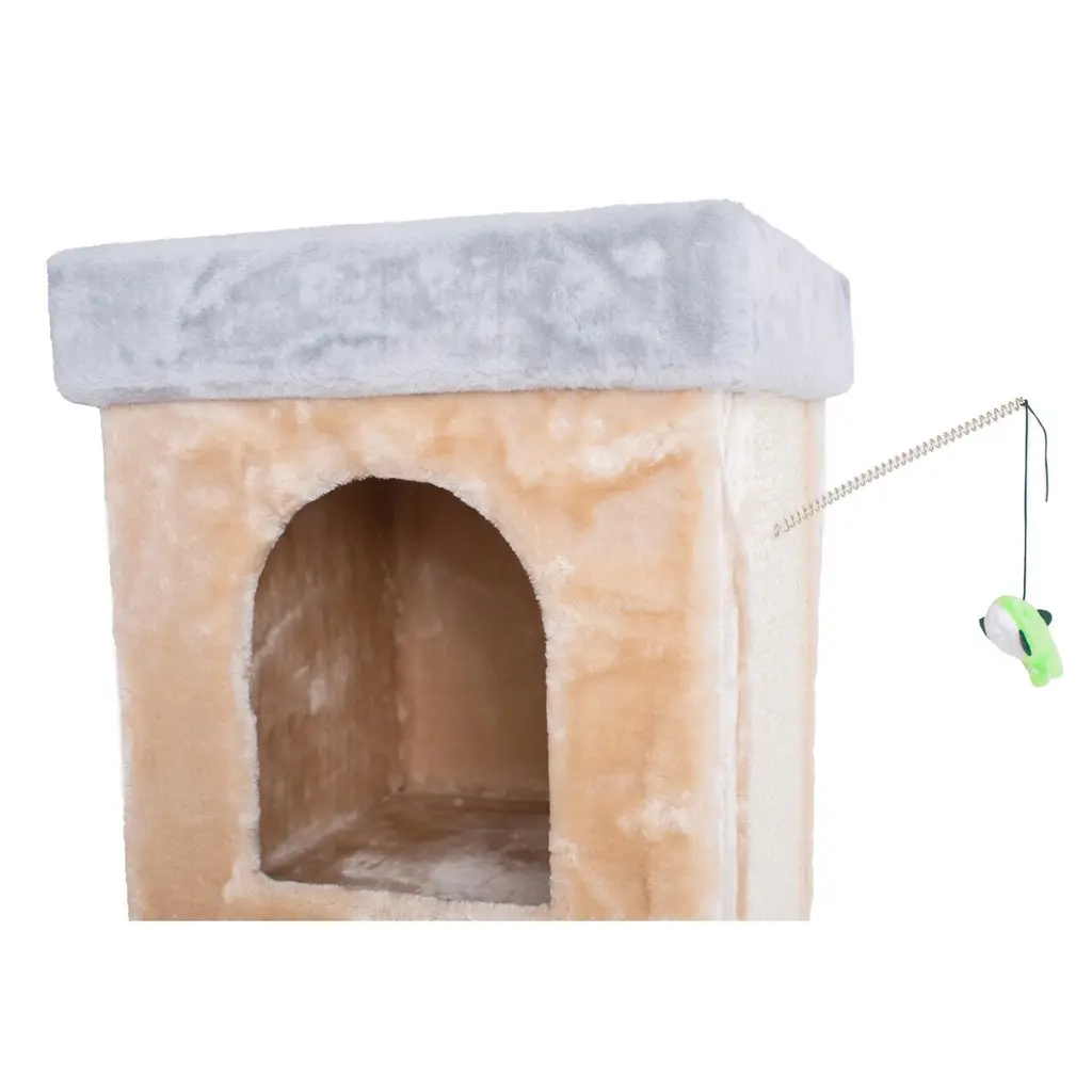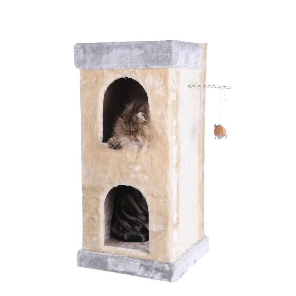 Double Condo Real Wood Cat House With Scratching Carpet For Cats - Beige - Beige