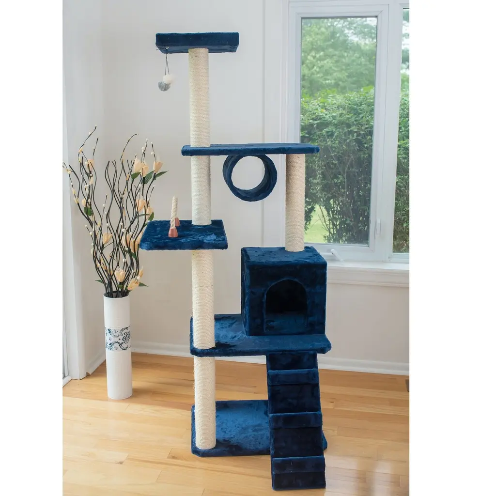 Description :The Premium cat tree is Cat Daddy Approved by noted cat behaviorist Jackson Galaxy. Your kitties can enjoy hours of play in the double condo. F and B Bullet: Multi-function Cat house with double Spacious Condo. Made of wood, faux carpet. Scratching board allow your felines to scratch from any angles as they like. The tower is perfect for cat to sit and observe their surroundings.Specification :