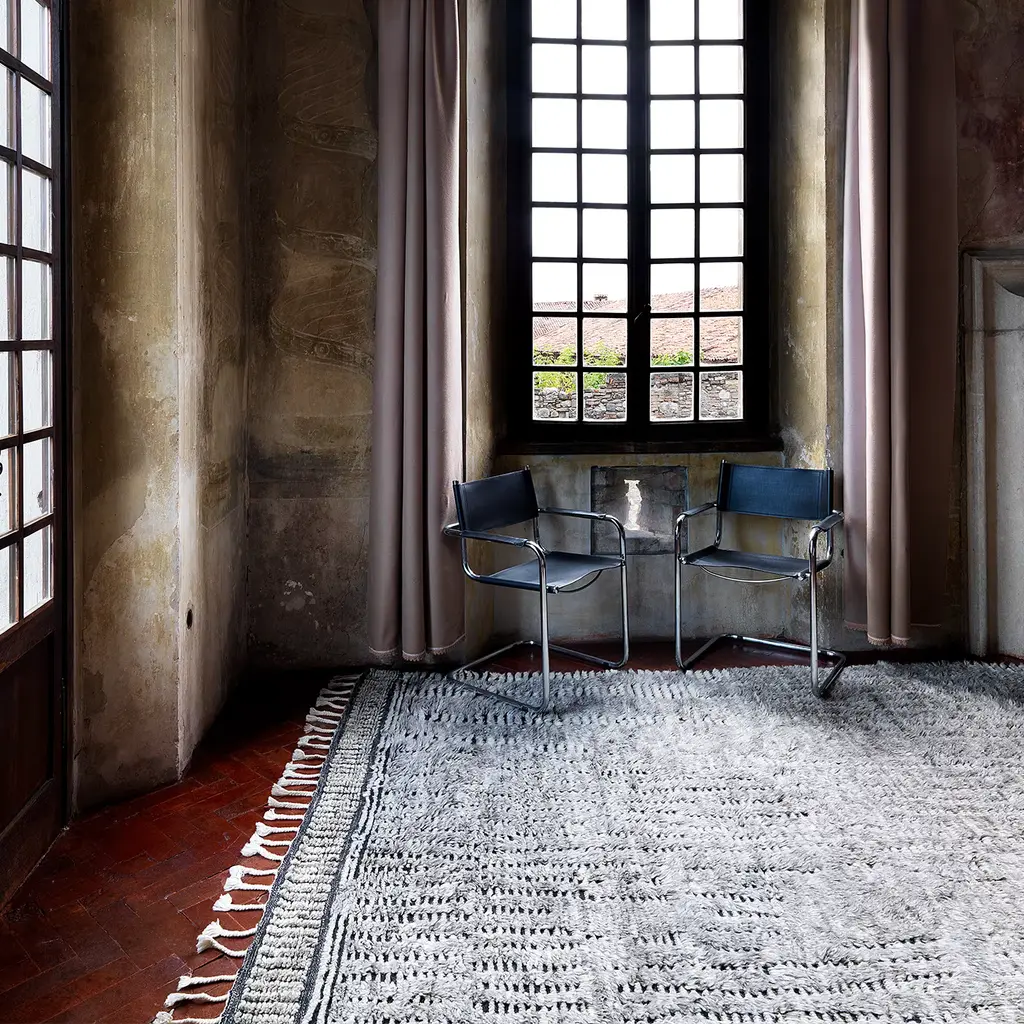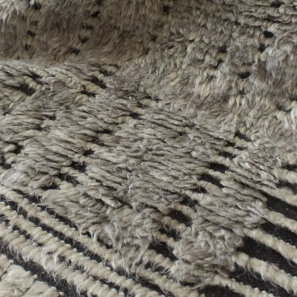 A fully hand-knotted carpet characterized by longer strands that with their movement recall the iconic sand dunes. This piece is made with a combination of New Zealander wool and cotton that gives it a dynamic surface, also supported by the fact that there are 4 different fleece heights. The dimensions of this item can be customized upon request.
