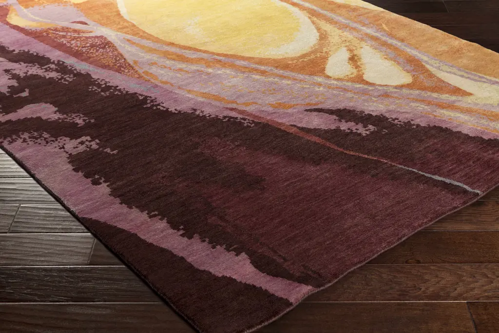 Collection: Farnham Colors: Burgundy, Mauve, Mustard, Brick Red, Dark Pink, Peach Construction: Hand Knotted Material: 100% Wool Pile: Medium Pile Pile Height: 0.39" Styles: Contemporary Made In: India Thickness: 0.47" Price Range: $$$$$ (Premium)