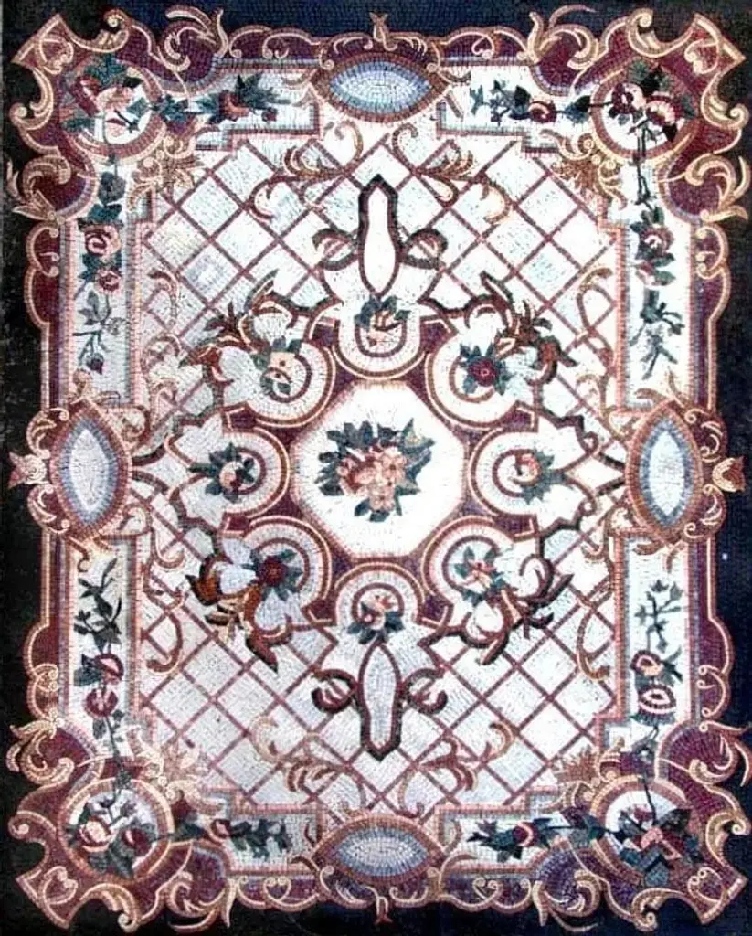 Floral Marble Mosaic Floor Carpet Tiles - 156cm X 195cm (61" X 77") / Without Frame