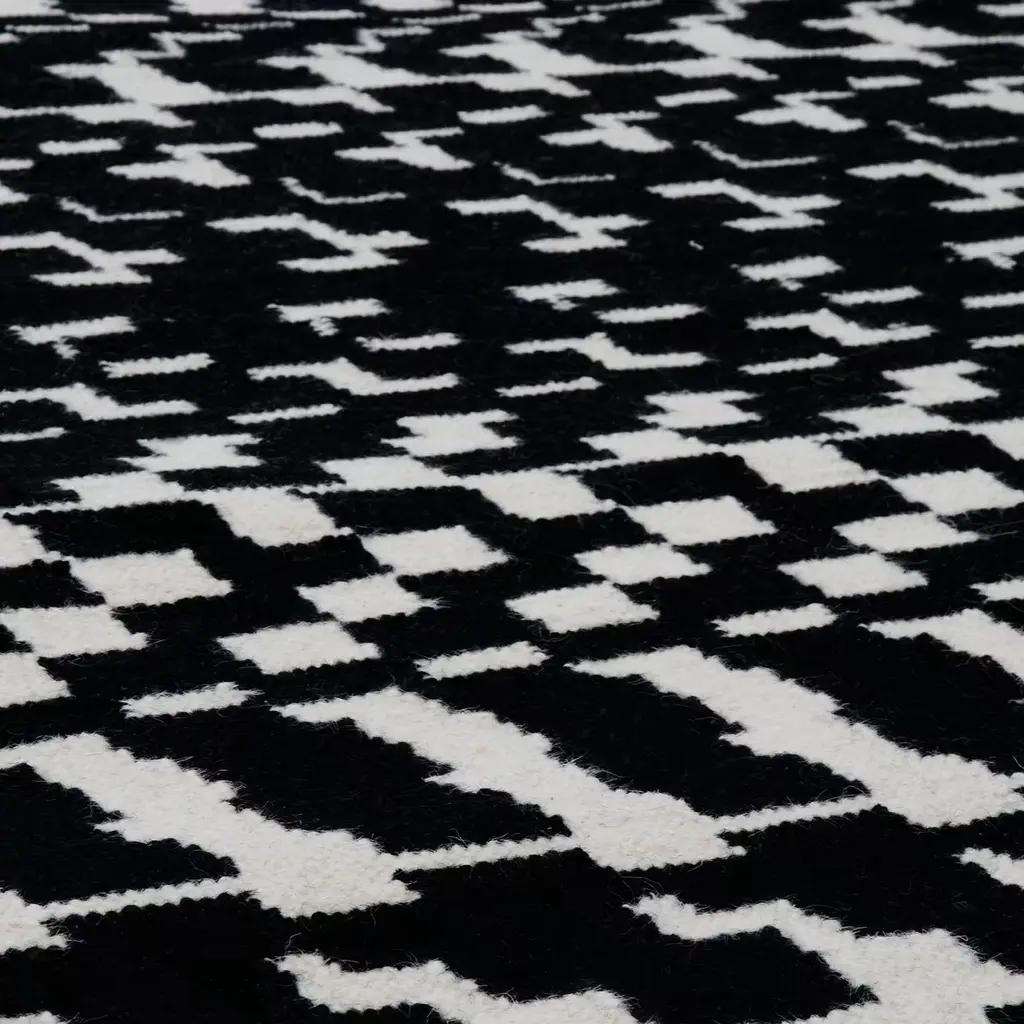 This work of design is part of the Fuoritempo collection which is a collection inspierd by musical rythms. The Fuoritempo Carpet presents an elegant combination of black and white. The lightness of a traditional Kilim s combined with the strength of contemporary visual design.