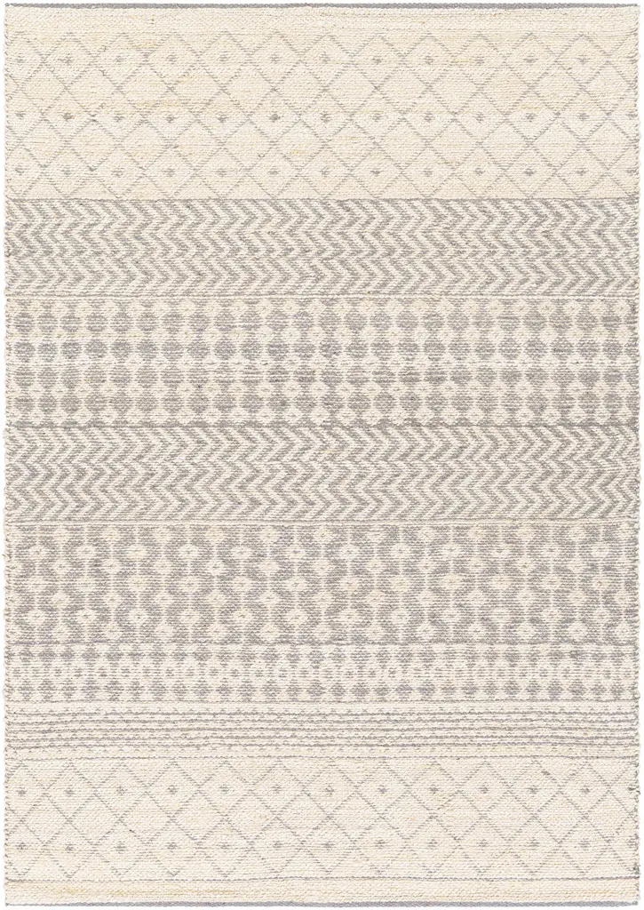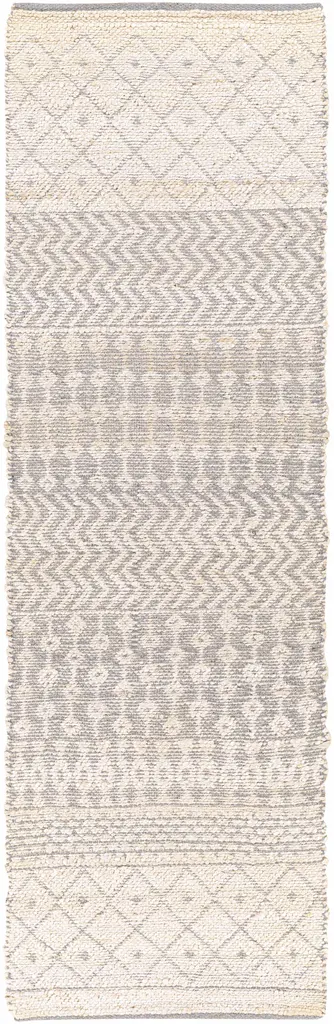 Collection: Garbutt Colors: Medium Gray, Peach Construction: Hand Woven Material: 55% Jute,45% Cotton Pile: No Pile Styles: Transitional,Bohemian Made In: India Thickness: 0.5" Price Range: $$$$$ (Most Affordable)