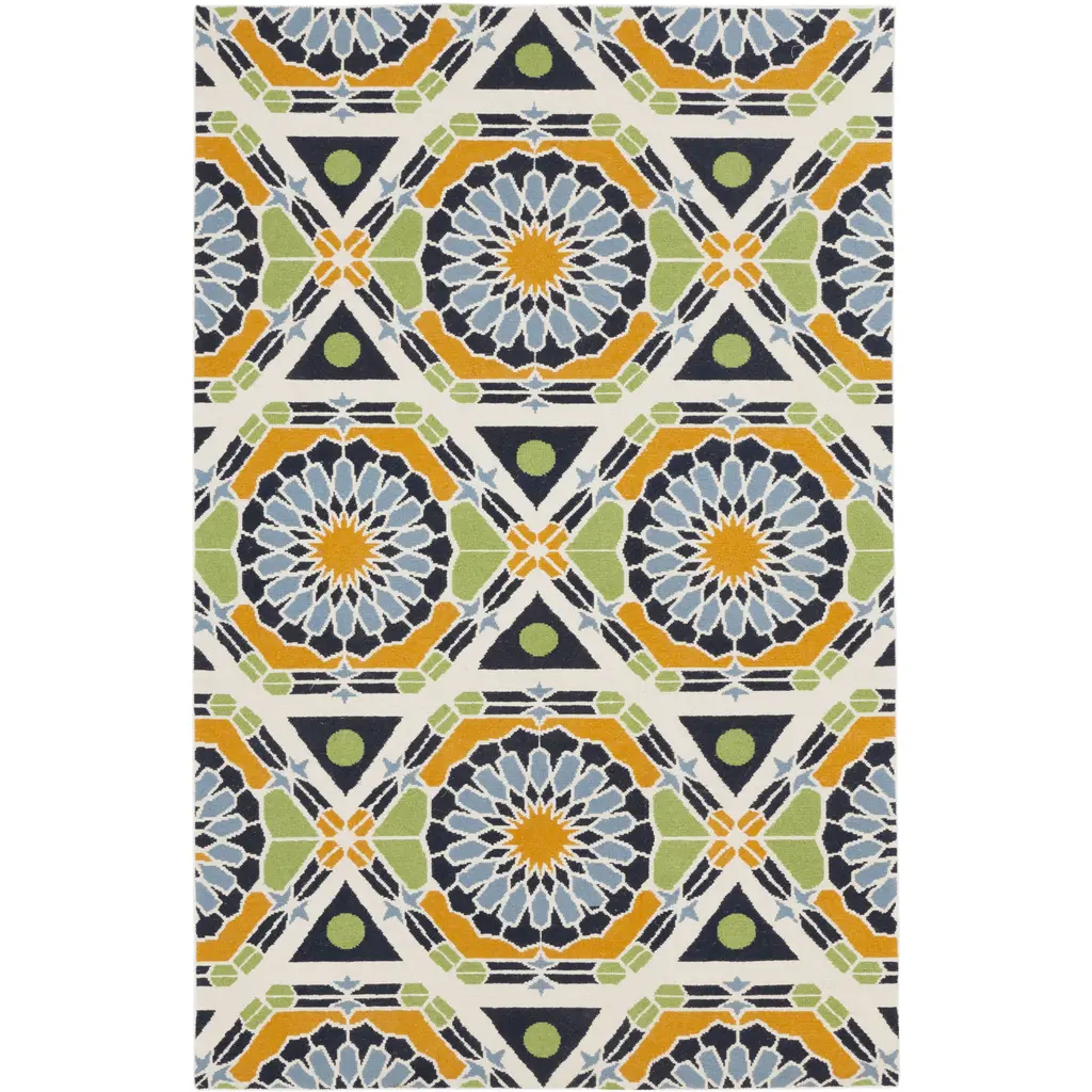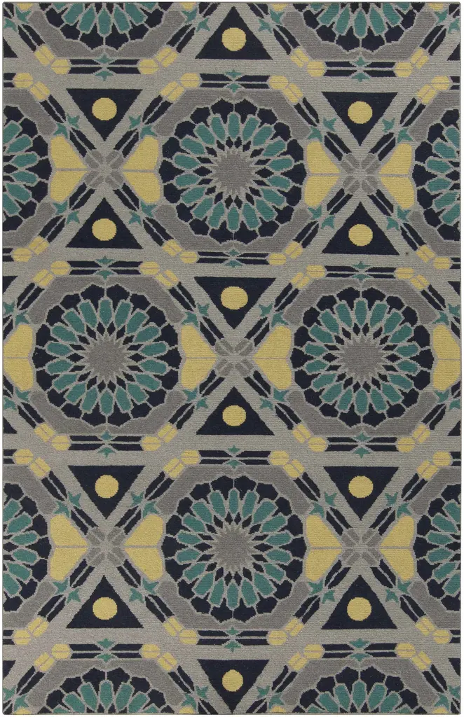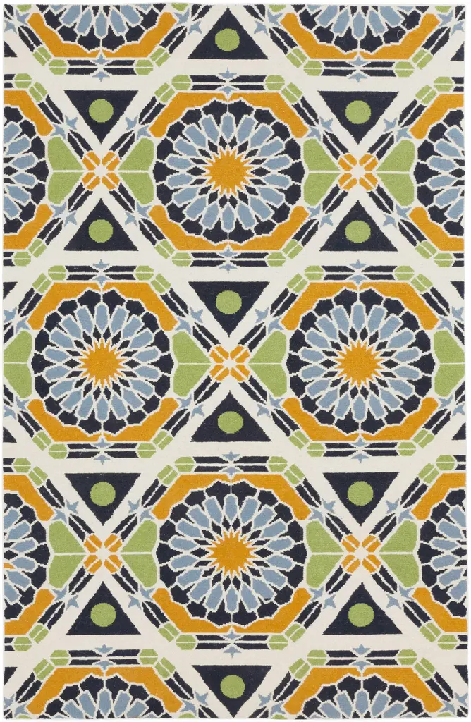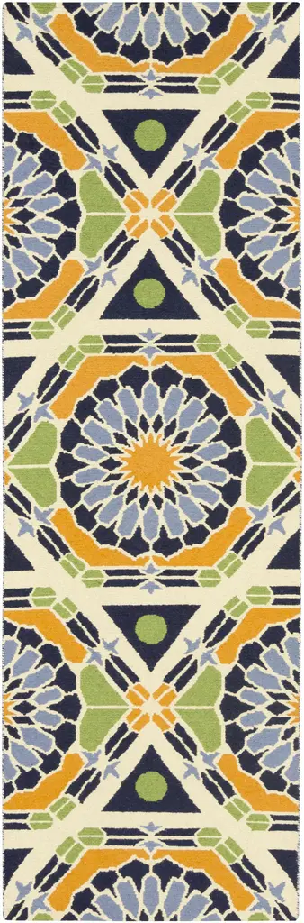Collection: Greenough Colors: Ivory, Burnt Orange, Light Blue, Navy, Lime Green Construction: Hand Knotted Material: 100% Wool Pile: No Pile Styles: Transitional,Traditional Made In: India Thickness: 0.63" Price Range: $$$$$ (Affordable)