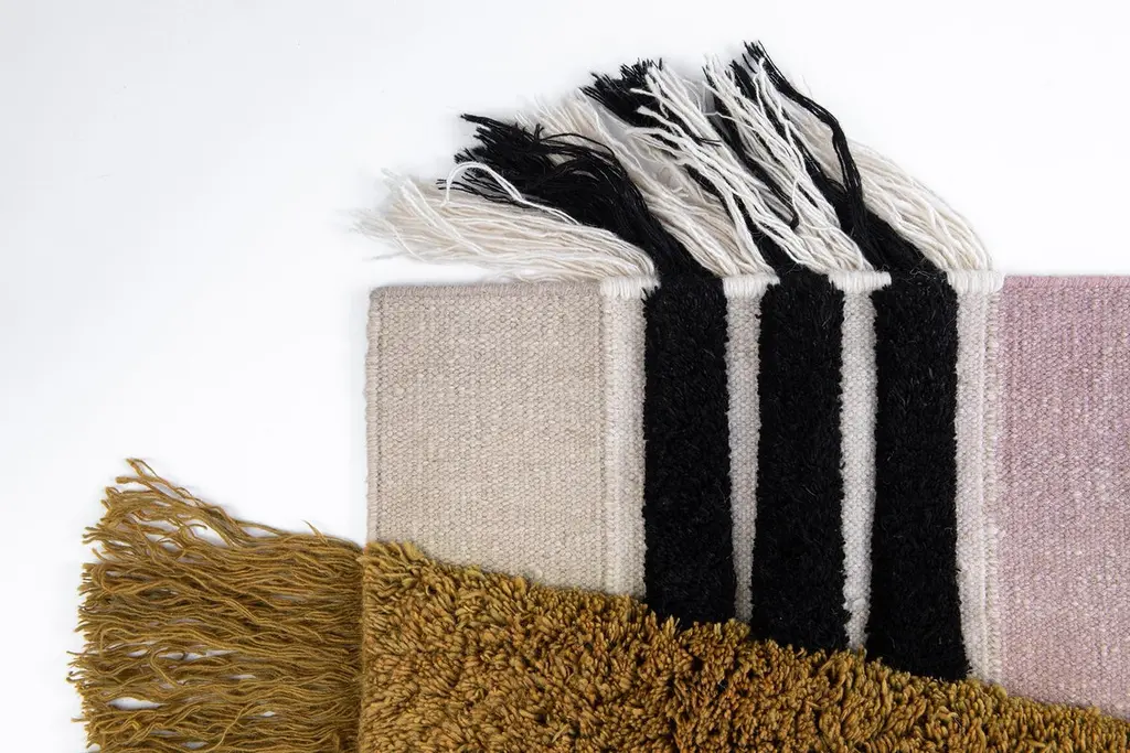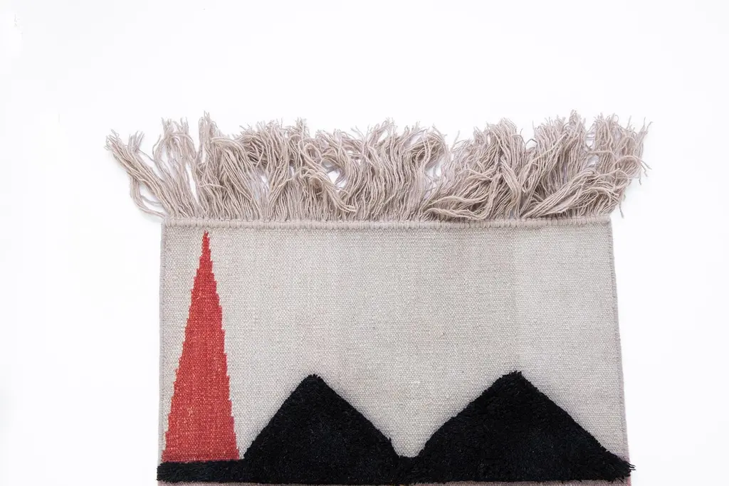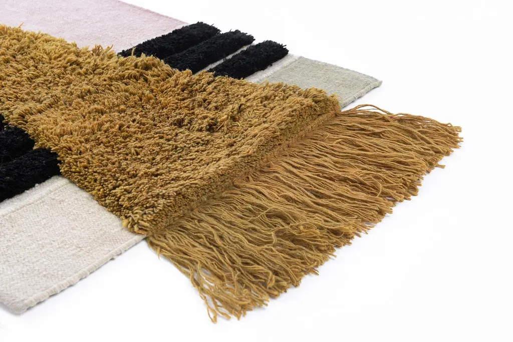 Hand-knotted textile poster #12 by Lyk carpetOne of a kind.Dimensions: W 85 x L 140 cm.Materials: 100% hand-spun tibetan highland wool from living sheep, traditionally plant-dyed, pot-dyed.Manual techniques and traditional pot-dying makes every piece unique, slight variations in size & tone are possible. Designed by Mareike Lienau – fairtrade certified by Label STEP.The new textile poster is based on the continual search fornew design possibilities with the traditional techniques of carpet making to present the material wool in a new and unseen facture.Mareike Lienau designs carpet objects and unique carpets for her label Lyk Carpet, which are hand knotted in Nepal. Her mission is to reinterpret craft and to bring it closer to young people. The superficial functionality of the She tries to radically question the superficial functionality of the carpet. Away from the rectangle Mareike wants to positive, lustful and imaginative the form & the craft, the material new, unseen and exaggerated show.Her approach asks: ‘What is contemporary about craft?‘ ,“Many people don’t really relate to products anymore. Mass production has led to today’s throwaway society. I want to contribute to raising people’s awareness, prompting them to think about products: how they are made and the resources involved; to generate values. I decided to do this through supporting the preservation of a cultural heritage, and by designing authentic objects. Contemplating and experiencing this artistic craft leads to new insights and points of view and enriches communication.With my textile posters and Pouf_Characters for example I am inviting people to ac- quaint themselves with a value creation chain, and to think about global responsibility.“