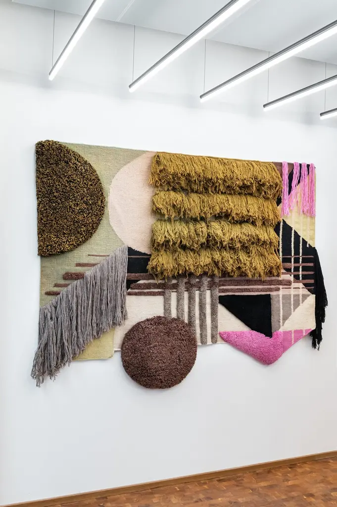 Hand-knotted textile poster #13 by Lyk carpetOne of a kind.Dimensions: W 200 x L 160 cm.Materials: 100% hand-spun tibetan highland wool from living sheep, traditionally plant-dyed, pot-dyed.Manual techniques and traditional pot-dying makes every piece unique, slight variations in size & tone are possible. Mareike Lienau designs carpet objects and unique carpets for her label Lyk Carpet, which are hand knotted in Nepal. Her mission is to reinterpret craft and to bring it closer to young people. The superficial functionality of the She tries to radically question the superficial functionality of the carpet. Away from the rectangle Mareike wants to positive, lustful and imaginative the form & the craft, the material new, unseen and exaggerated show.Her approach asks: ‘What is contemporary about craft?‘ ,“Many people don’t really relate to products anymore. Mass production has led to today’s throwaway society. I want to contribute to raising people’s awareness, prompting them to think about products: how they are made and the resources involved; to generate values. I decided to do this through supporting the preservation of a cultural heritage, and by designing authentic objects. Contemplating and experiencing this artistic craft leads to new insights and points of view and enriches communication.With my textile posters and Pouf_Characters for example I am inviting people to ac- quaint themselves with a value creation chain, and to think about global responsibility.“