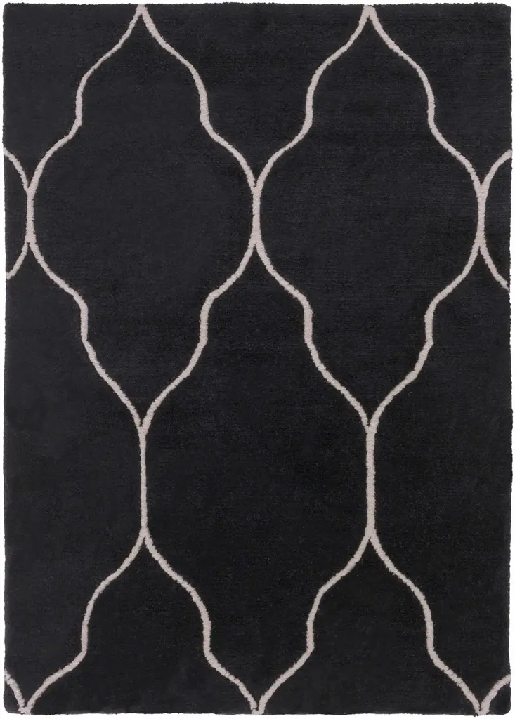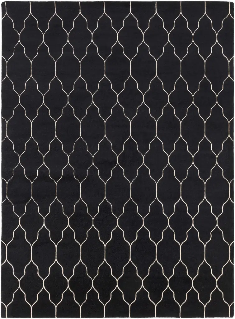 Collection: Hemingway Colors: Black, Beige Construction: Hand Knotted Material: 100% Wool Pile: Medium Pile Pile Height: 0.31" Styles: Transitional Made In: India Thickness: 0.39" Price Range: $$$$$ (Affordable)