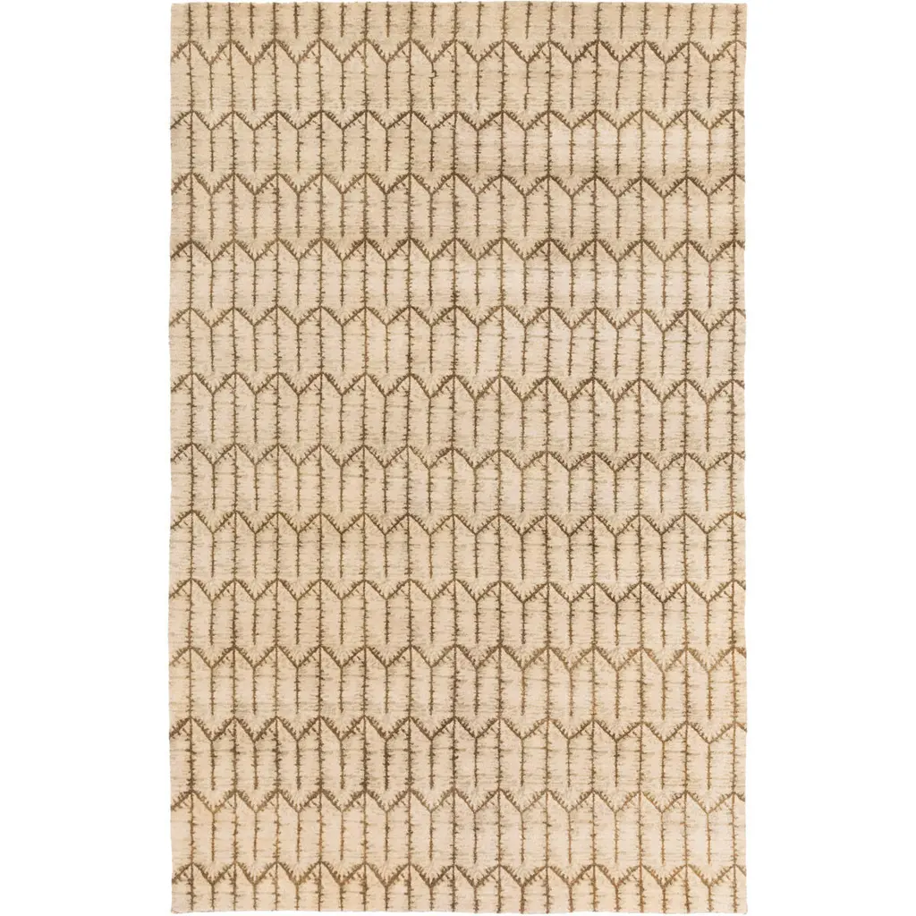 Collection: Hennessey Colors: Beige, Olive Construction: Hand Knotted Material: 100% Wool Pile: Medium Pile Pile Height: 0.39" Styles: Transitional Made In: India Thickness: 0.47" Price Range: $$$$$ (Premium)