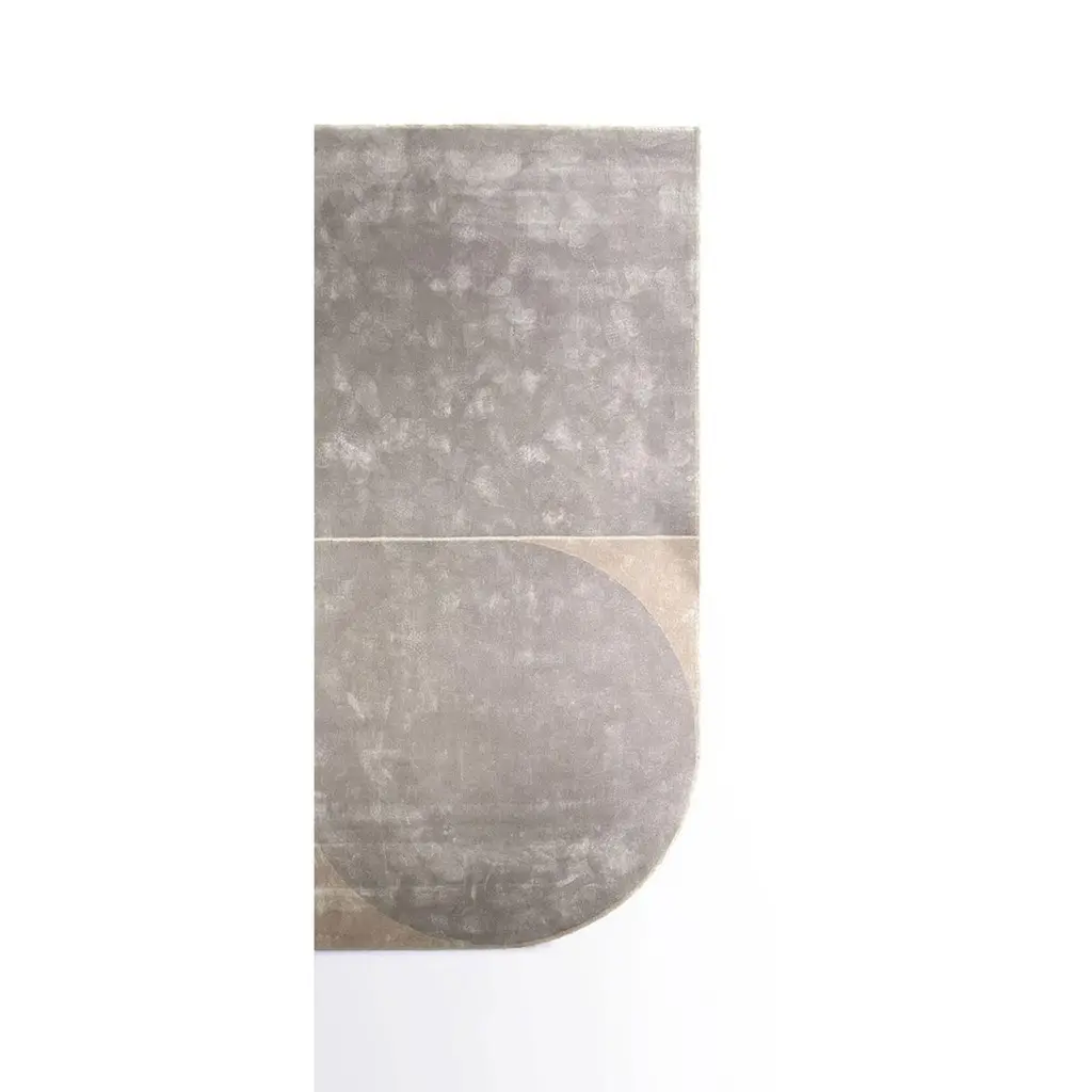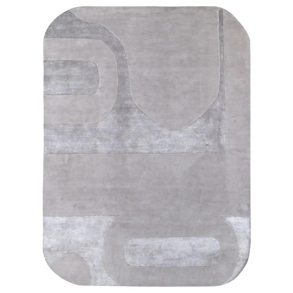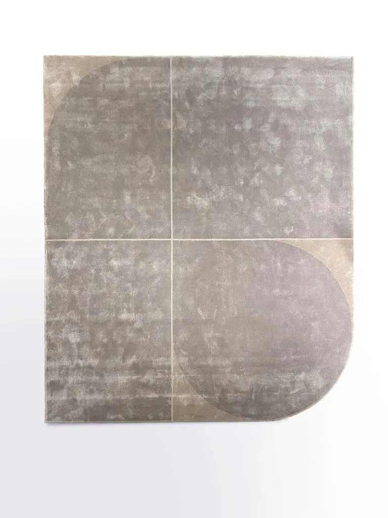 Ice Gray and Desert Beige Tarsia Carpet by Andrea BoniniLimited EditionDimensions: W 285 x L 240 cm.Materials: Hand-tufted natural bamboo silk.Numbered and signed pieces. Custom size or finish on request. Different silk color combinations are available: Ice gray and Desert beige; Teal blue and Night blue; Sand white and Chocolate brown. Please contact us.The aim of the Edition Collection is to launch a collection of sculptural furnitureelements produced in a limited series which can be made exclusively by expert and specialized craftsmen.Each piece is intrinsically connected and portrays elegance through geometry and proportions. Meticulous detail of symmetry, bold and deep lines, virtuous and ample curves, cuts and grafts can be found in every single piece.Each product encloses the complexity of its production process in a pure and virtuous form.They are limited editions, each piece signed and numbered, appreciated as art or as design. They are the result of past experiences yet the keeper of future projects. The purpose of andreabonini edizioni? To tell a story through the use of materials between tangent reality and the world of dreams.Andrea Bonini seizes every detail that strikes his attention with a critical eye.A still image, imprinted in the mind, which becomes an idea through a process of mental elaboration and a fusion of scenarios. The cultural background in which Bonini was born is characterized by the timeless charm of a precious combination of two materials that enhance each other: metal and marble.His is a family of metal artisans for several generations and Bonini was born in a landscape which is the cradle of marble extraction and processing. The deep knowledge of these two fascinating and natural elements leads him to often insert them in his works; he prefers them in their authentic finishes and shades, sometimes raw or with their natural imperfections, typical of this material.Adopted by the city of Milan; here he gains his first success and initiates important collaborations. Bonini listens and follows the artistic trails left by his masters; from Carlo Scarpa to Franco Albini and Christian Liaigre.Andrea Bonini is sensitive and concentrated, with meticulous commitment he follows every phase of his products and his interiors; he is personally active in dealing with the craftsmen and his sharp pencil captures any variation or improvement.During his career he chooses to design for companies with high artisanal criteria; the same intention is reflected in his interior projects, attention to every detail with a sartorial approach recognizable on the international scene. Bonini has successfully completed and is currently working on projects in Italy, China, the United Kingdom and the French Riviera.To date, his studio atelier is located in Milan in via Montenapoleone, core of Italian excellence. It is a small yet refined ambience; a boutique with contemporary taste.Here his pencil gives life to all his projects, elaborated in every detail together with his team, producing a strongly recognisable and prestigious result.