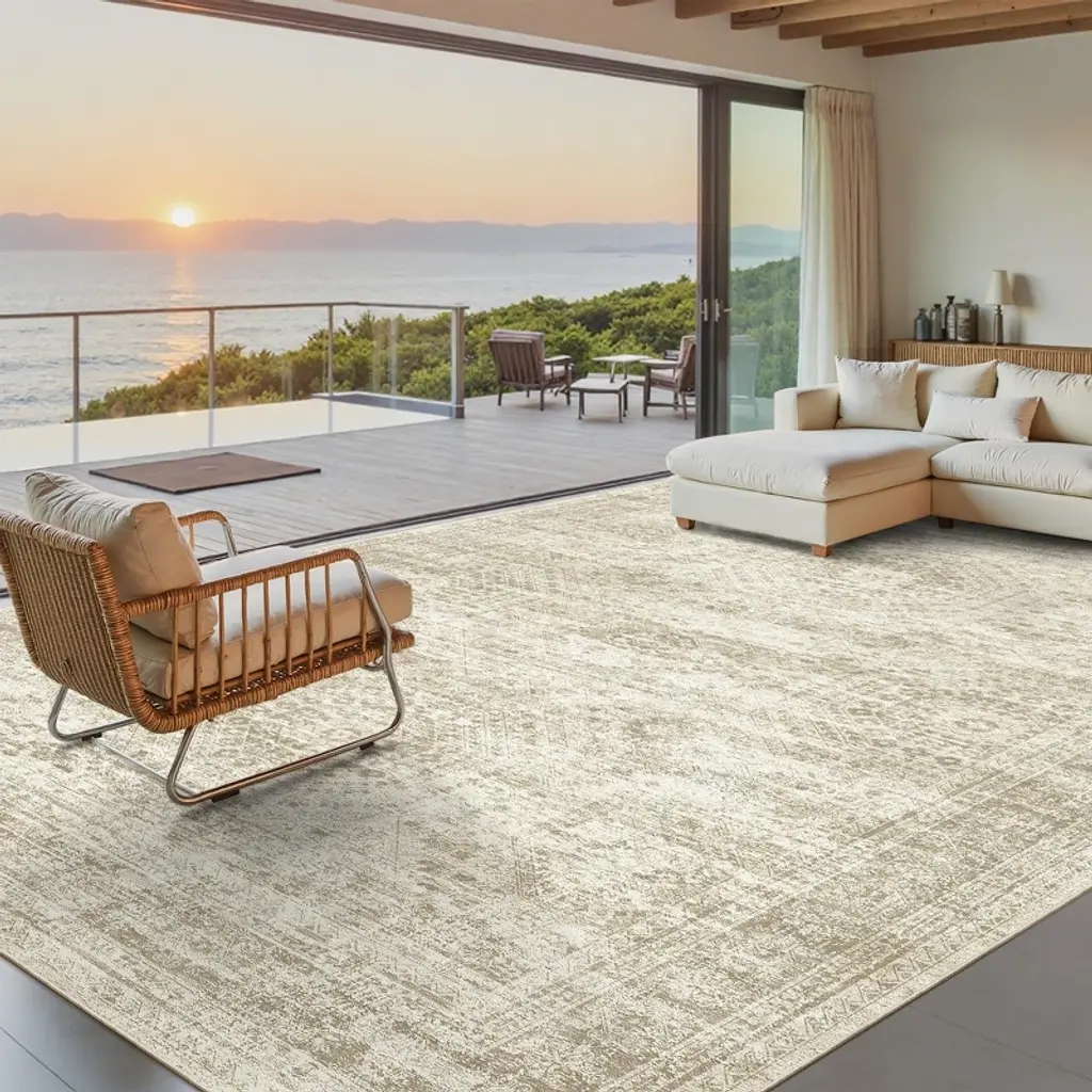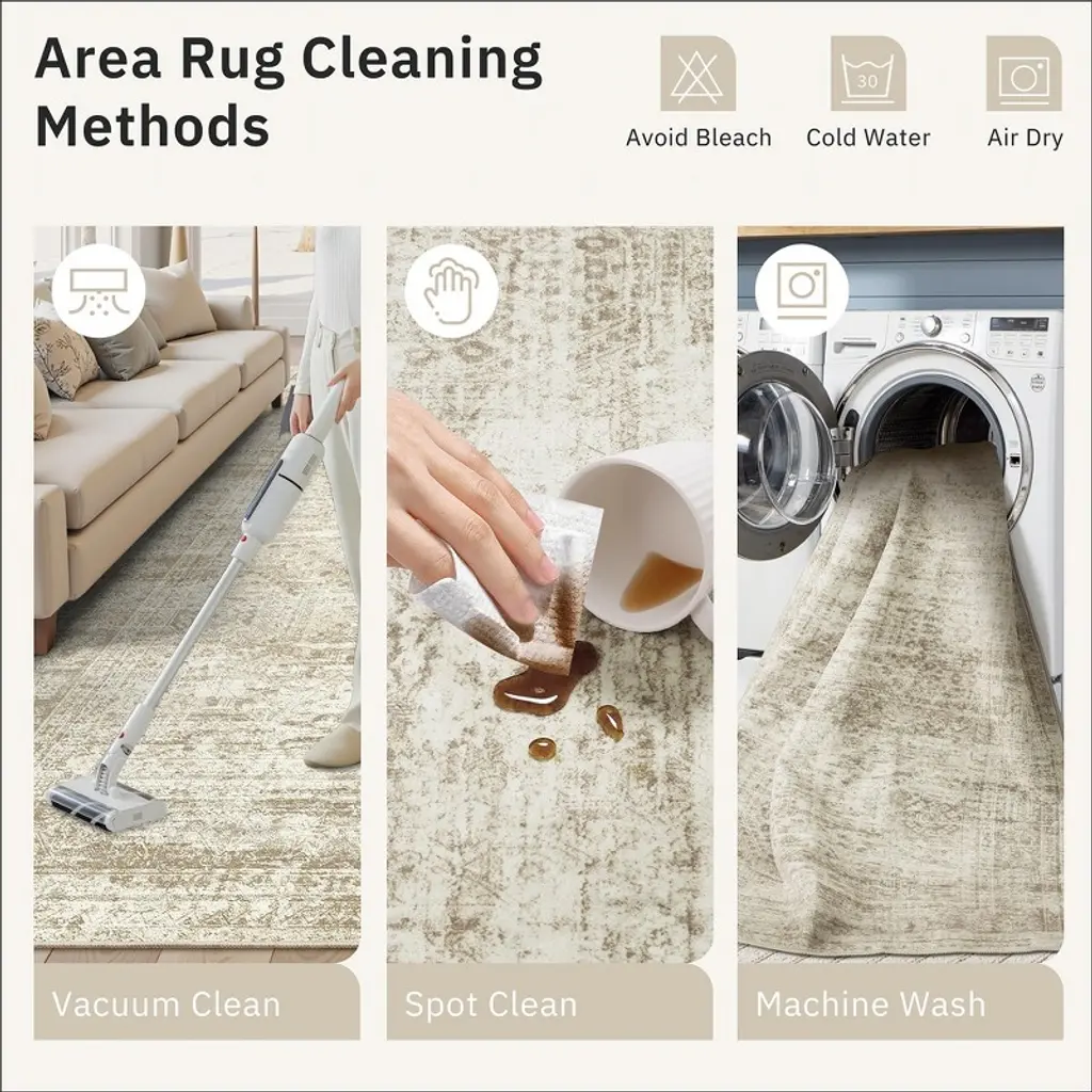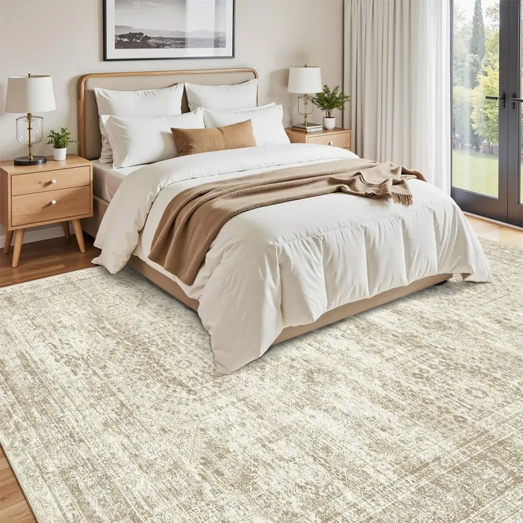 Itopfox Washable Soft Vintage Beige Carpet For Living Room, Bedroom & Dining Room, Non-slip Stain Resistant Under Table Rug