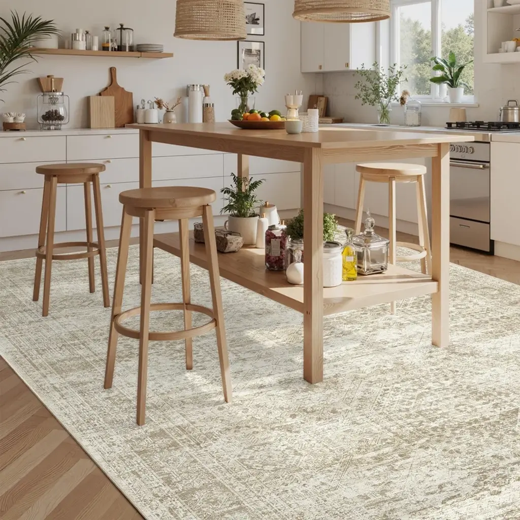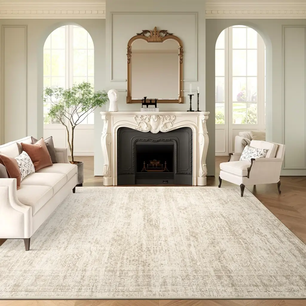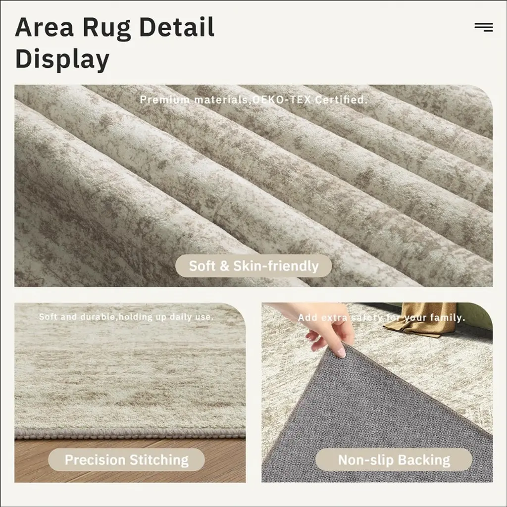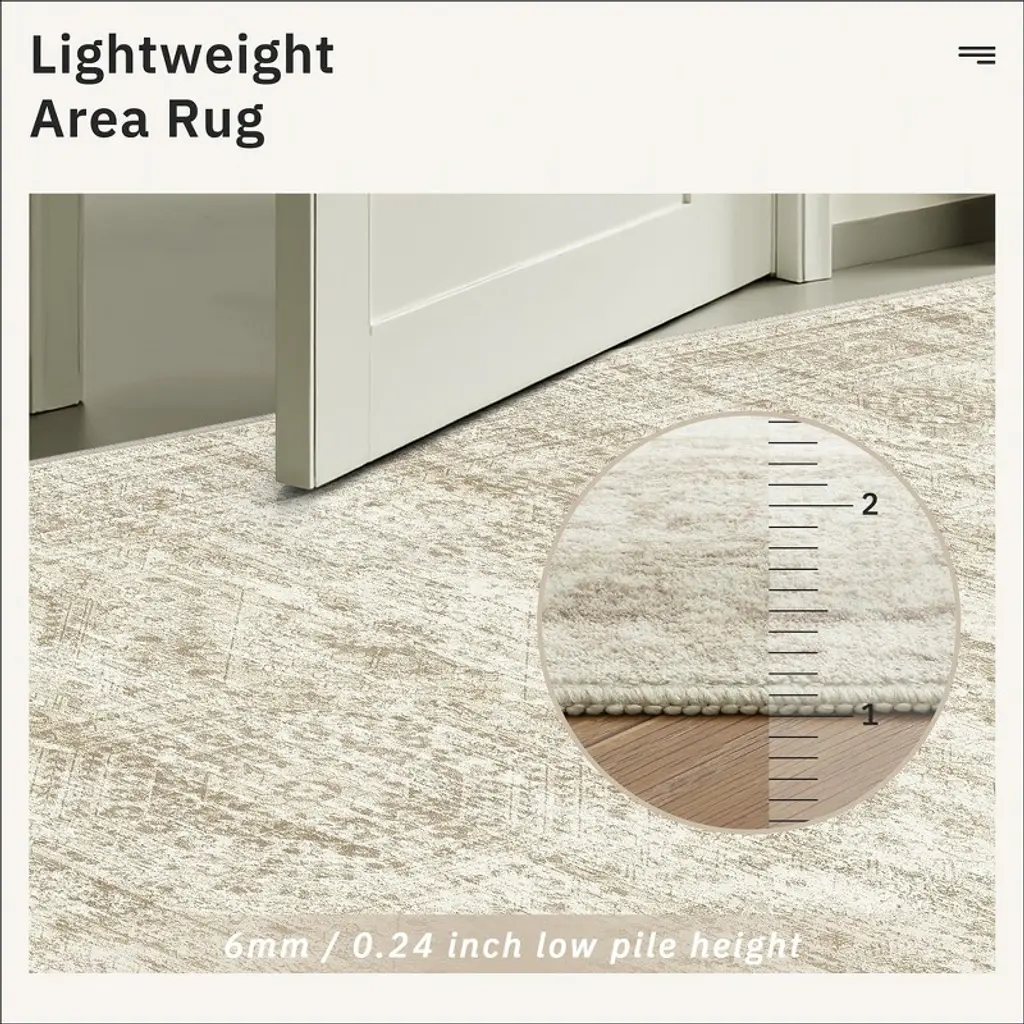 Itopfox Washable Soft Vintage Beige Carpet For Living Room, Bedroom & Dining Room, Non-slip Stain Resistant Under Table Rug