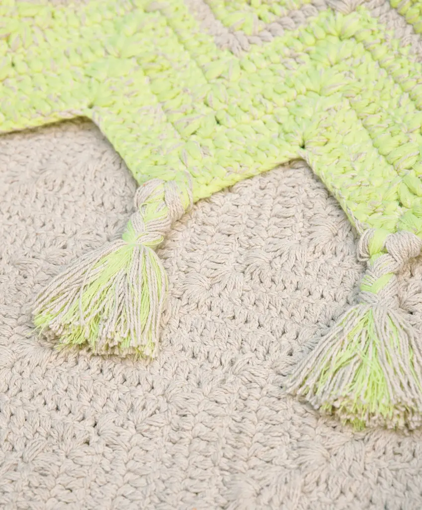 Collection: Johnson Colors: Yellow, Sage Construction: Hand Woven Material: 34% Acrylic,33% Cotton,33% Polyester Pile: No Pile Styles: Transitional,Bohemian Made In: India Thickness: 0.43" Price Range: $$$$$ (Affordable)
