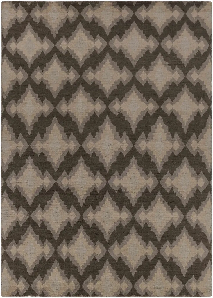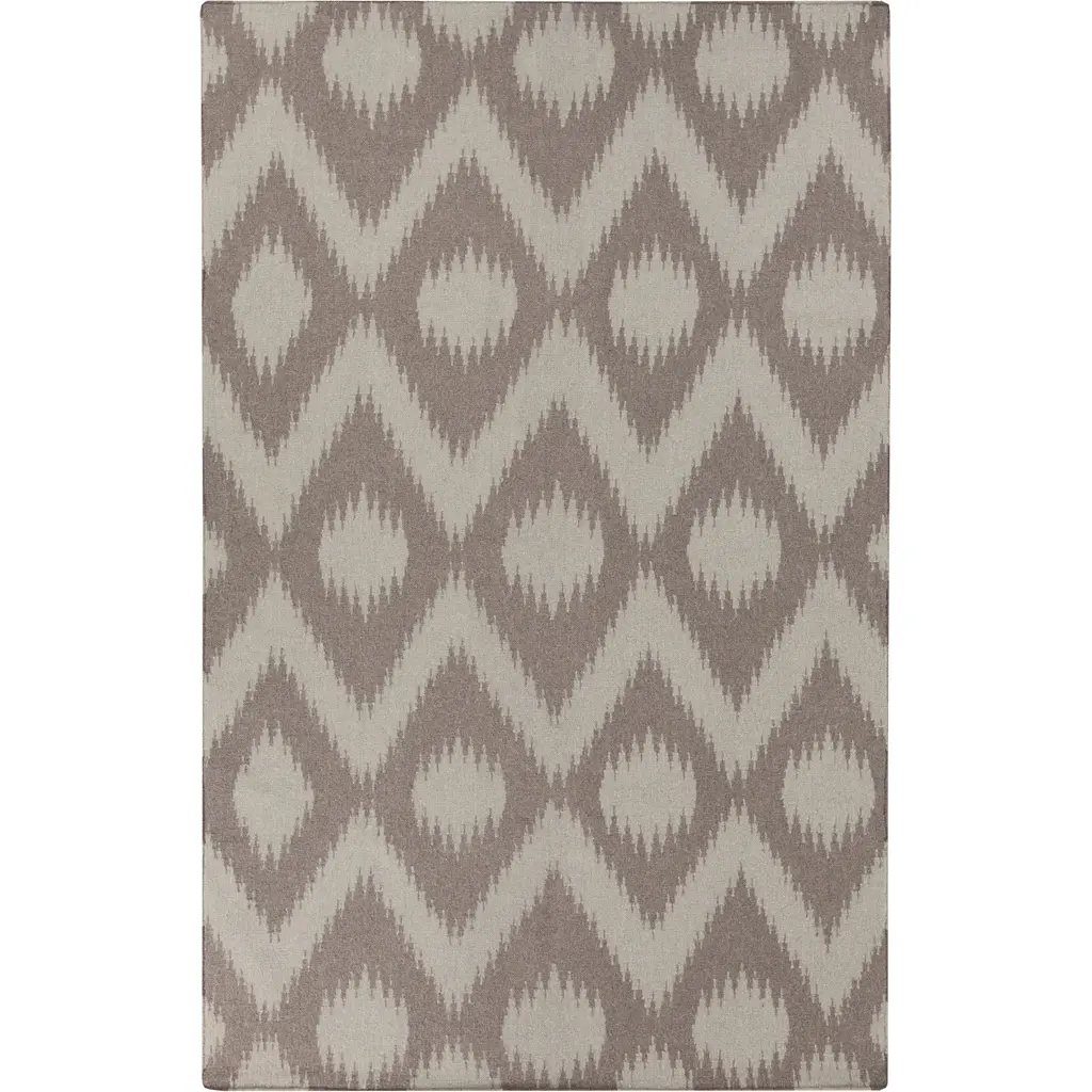 Collection: Marenisco Colors: Charcoal, Light Gray, Peach Construction: Hand Knotted Material: 100% Wool Pile: No Pile Styles: Contemporary Made In: India Thickness: 0.16" Price Range: $$$$$ (Affordable)