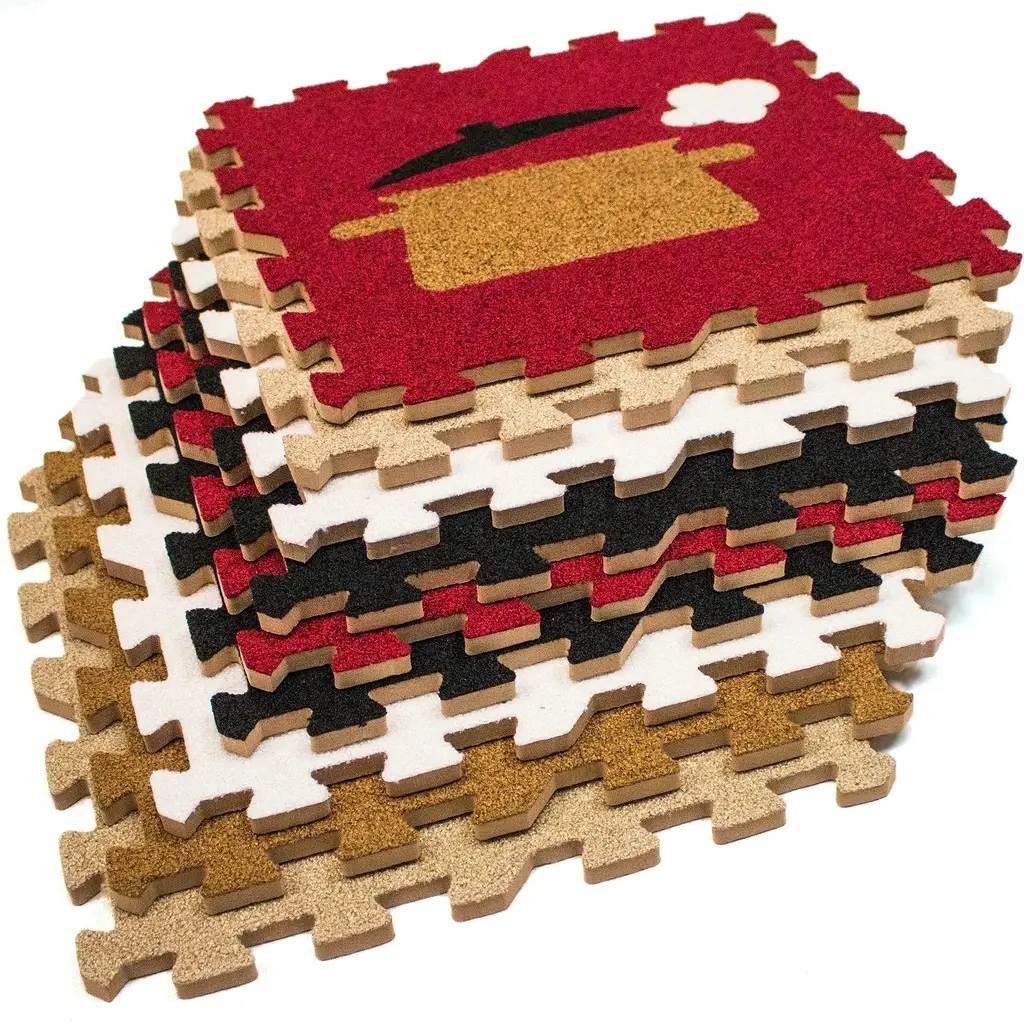 It's playtime with the Matney Kids Interlocking Puzzle Carpet! See the world in bright, bold patterns with foam mat puzzle pieces that provide a comfortable interactive play experience. This carpet features 9 assorted tile patterns that can be easily be rearranged to you or your child's preference. The puzzle pieces can even be used to build creative shapes and figures. Interchangeable pieces allow kids to develop gross motor skills, hand-eye coordination, and visual sensory growth. Large, cushioned, and colorful puzzle pieces are very safe, and not only to protect your children but also protect against floor damage. They are excellent play mats to keeps kids entertained and allow them to play and jump without worrying they might fall on hard floor surfaces. Toddlers will love taking apart and re-arranging these puzzle pieces for many different learning games or simply for fun. This mat can be used to design play areas in a home, school, daycare, and more. Turn any room into a stylish and fun place! Whether you're decorating a playroom, bedroom, or simply need a padded play area, these interlocking mats are versatile enough to be used almost anywhere! With quick and easy assembly, they can be installed in classrooms, nurseries, daycares, indoor playgrounds, and much more. Puzzle pieces connect quickly and easily disassemble for quick storage.
