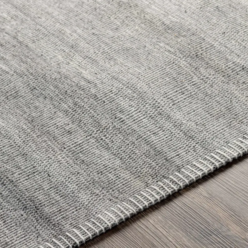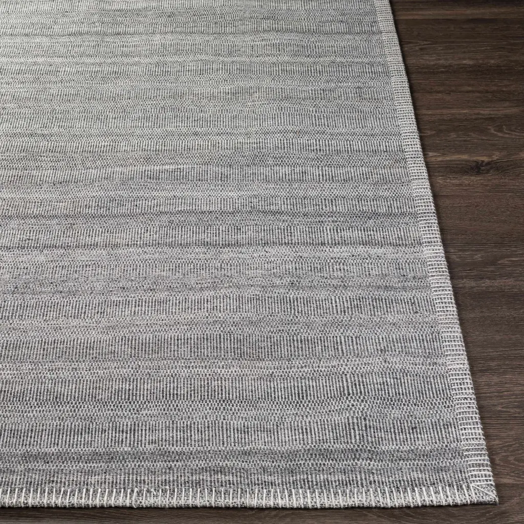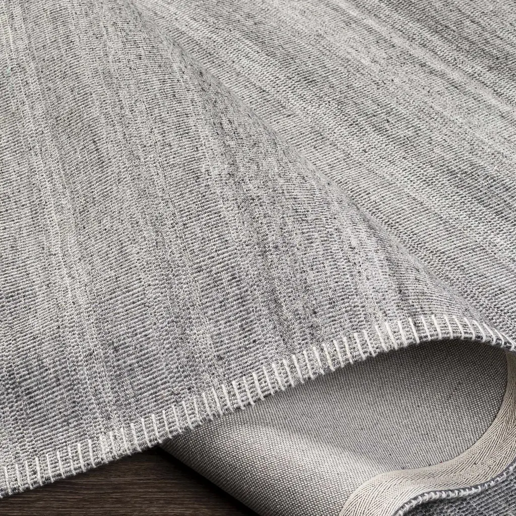 Collection: Millicent Colors: Charcoal, Medium Gray, Silver Gray Construction: Hand Woven Material: 100% Viscose Pile: Medium Pile Pile Height: 0.25" Styles: Transitional,Bohemian Backing: Canvas Made In: India Thickness: 0.25" Price Range: $$$$$ (Affordable)