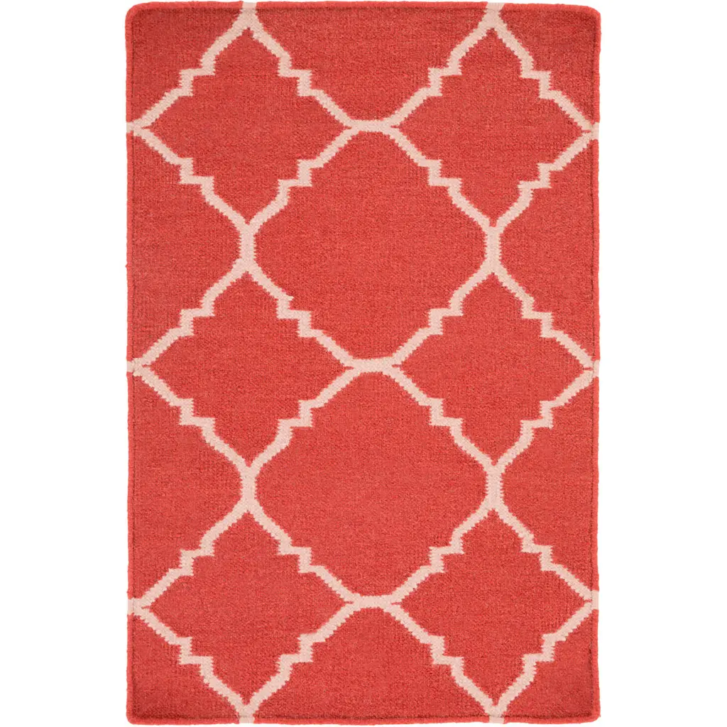 Collection: Moccasin Colors: Pink, Coral, Ivory Construction: Hand Woven Material: 100% Wool Pile: No Pile Styles: Transitional Made In: India Price Range: $$$$$ (Affordable)