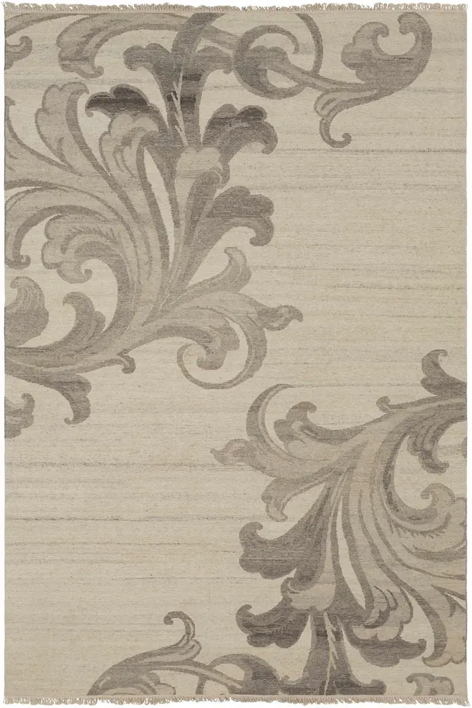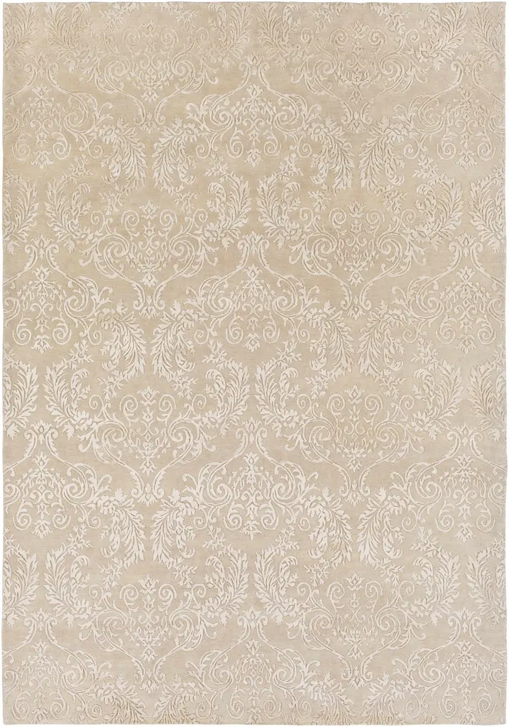 Collection: Moorhead Colors: Dark Brown, Medium Brown, Medium Gray, Peach Construction: Hand Knotted Material: 100% Wool Pile: No Pile Styles: Transitional Made In: India Thickness: 0.2" Fringe Length: 1" Price Range: $$$$$ (Affordable)
