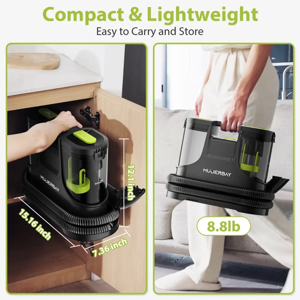 Mujerbay 15kpa Portable Carpet Cleaner Machine, Easy Move With Handle, 1.5-inch Deep Cleaning Machine For Couch, Stairs, Car And Pet Messes. Green