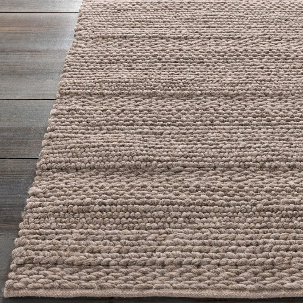 Collection: Newfolden Colors: Charcoal, Ivory, Dark Red Construction: Hand Woven Material: 100% Wool Pile: No Pile Styles: Contemporary Made In: India Thickness: 0.98" Price Range: $$$$$ (Affordable)