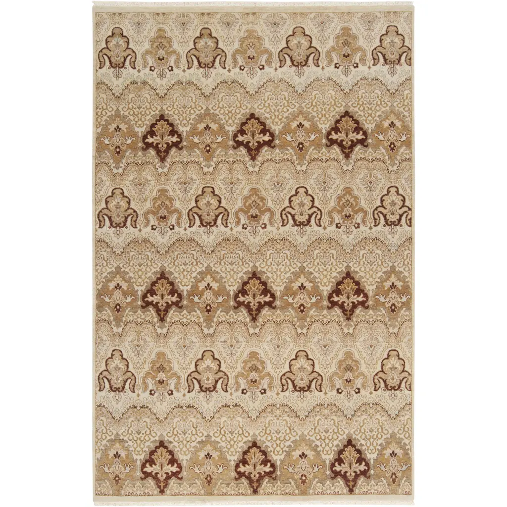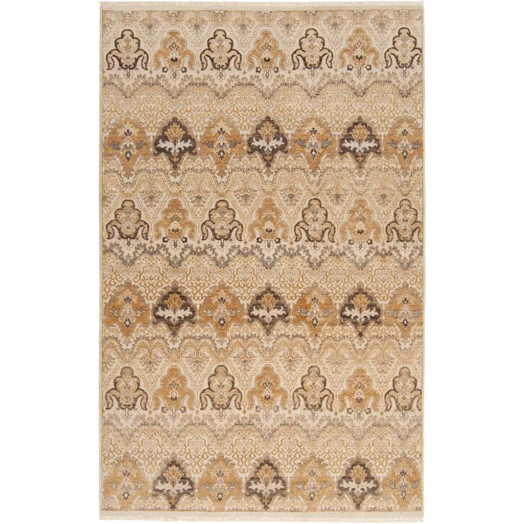 Collection: Newhope Colors: Dark Brown, White, Tan, Gray, Light Brown Construction: Hand Knotted Material: 100% NZ Wool Pile: High Pile Pile Height: 0.62" Styles: Traditional Made In: Nepal Thickness: 0.63" Price Range: $$$$$ (Premium)