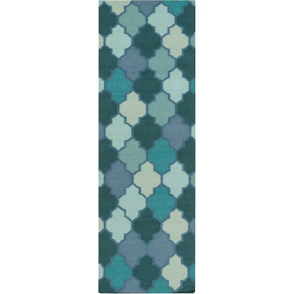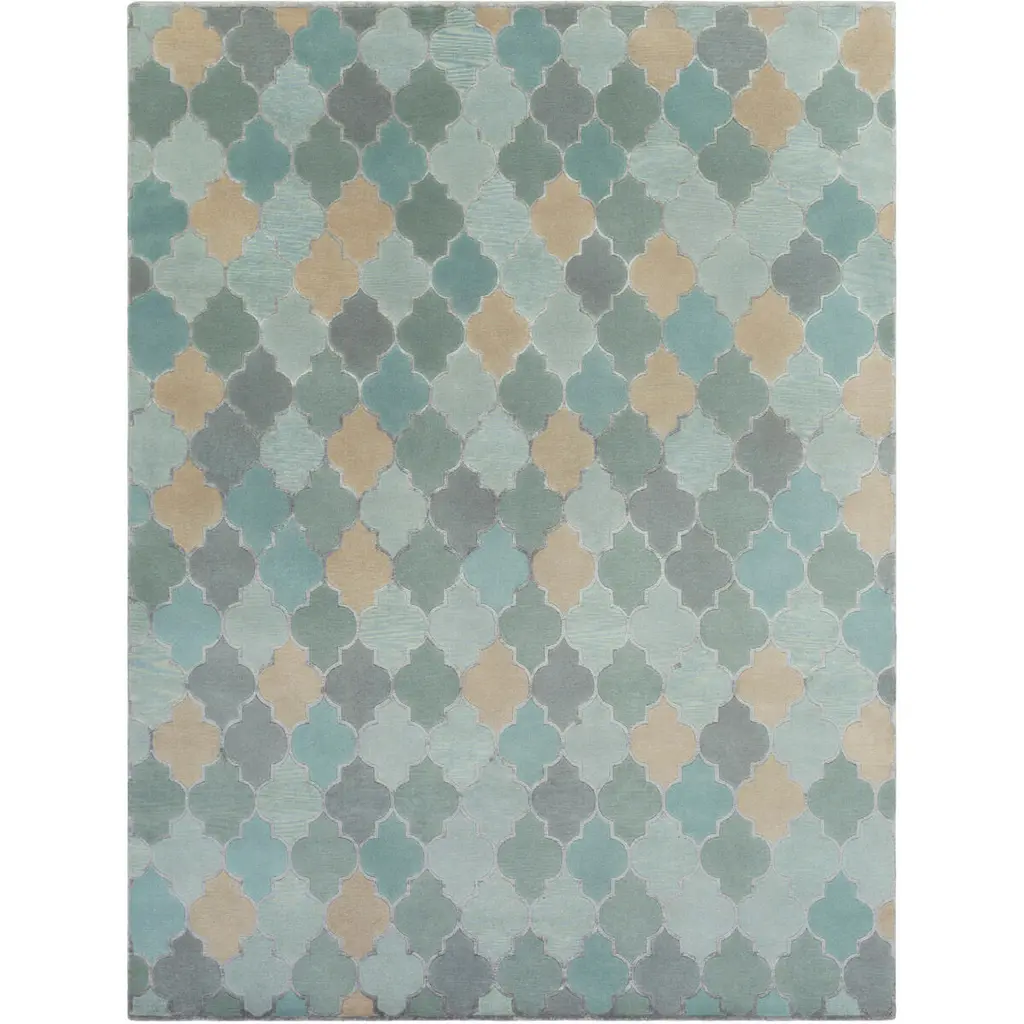 Collection: Node Colors: Sage, Light Green, Navy Construction: Hand Woven Material: 90% Wool,10% Chenille-Cotton Pile: No Pile Styles: Contemporary Made In: India Thickness: 0.16" Price Range: $$$$$ (Affordable)