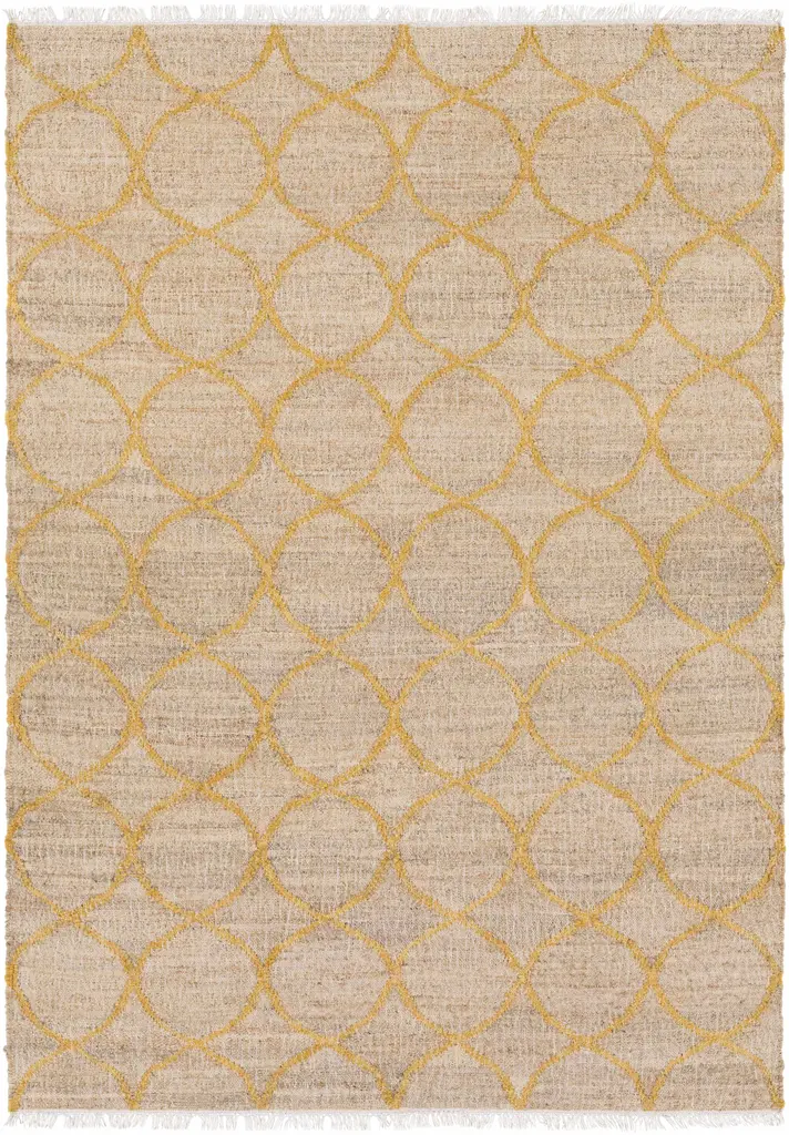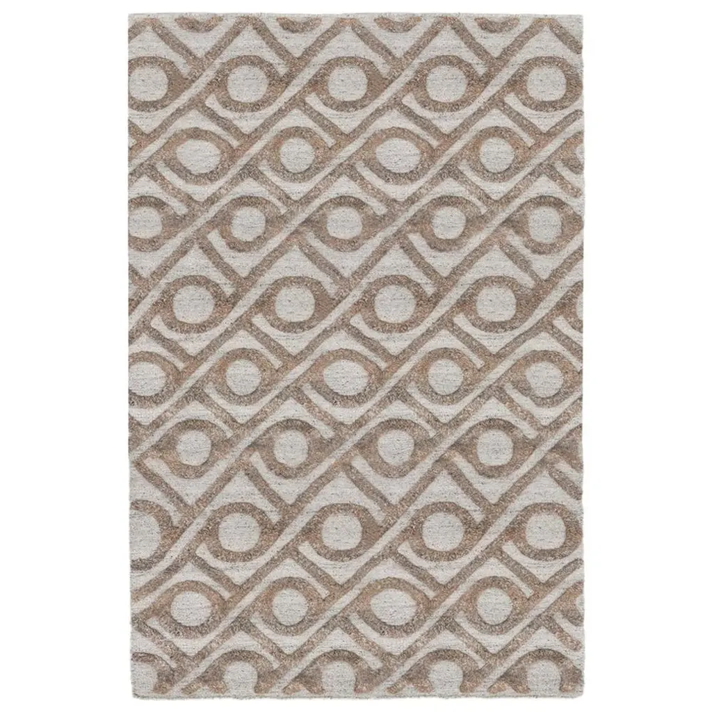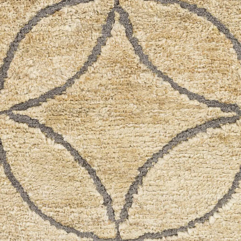 Collection: Olivebridge Colors: Tan, Beige, Gray Construction: Hand Knotted Material: 60% Wool,40% Jute Pile: Low Pile Pile Height: 0.11" Styles: Natural Fibers Made In: India Thickness: 0.15" Price Range: $$$$$ (Affordable)