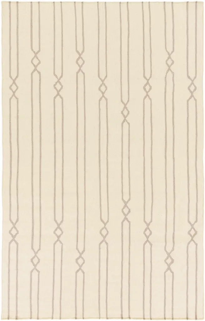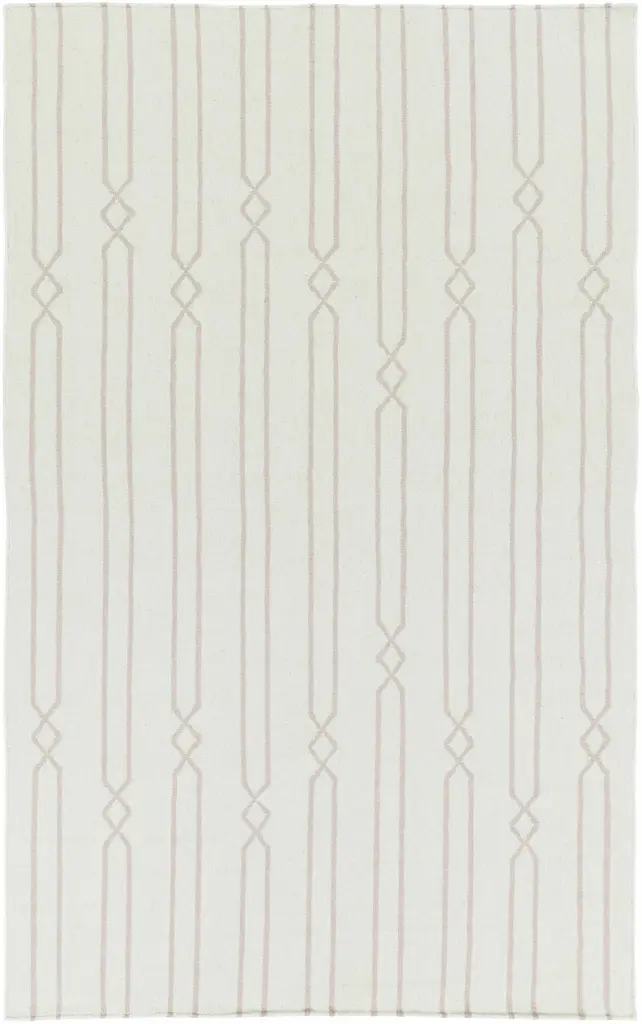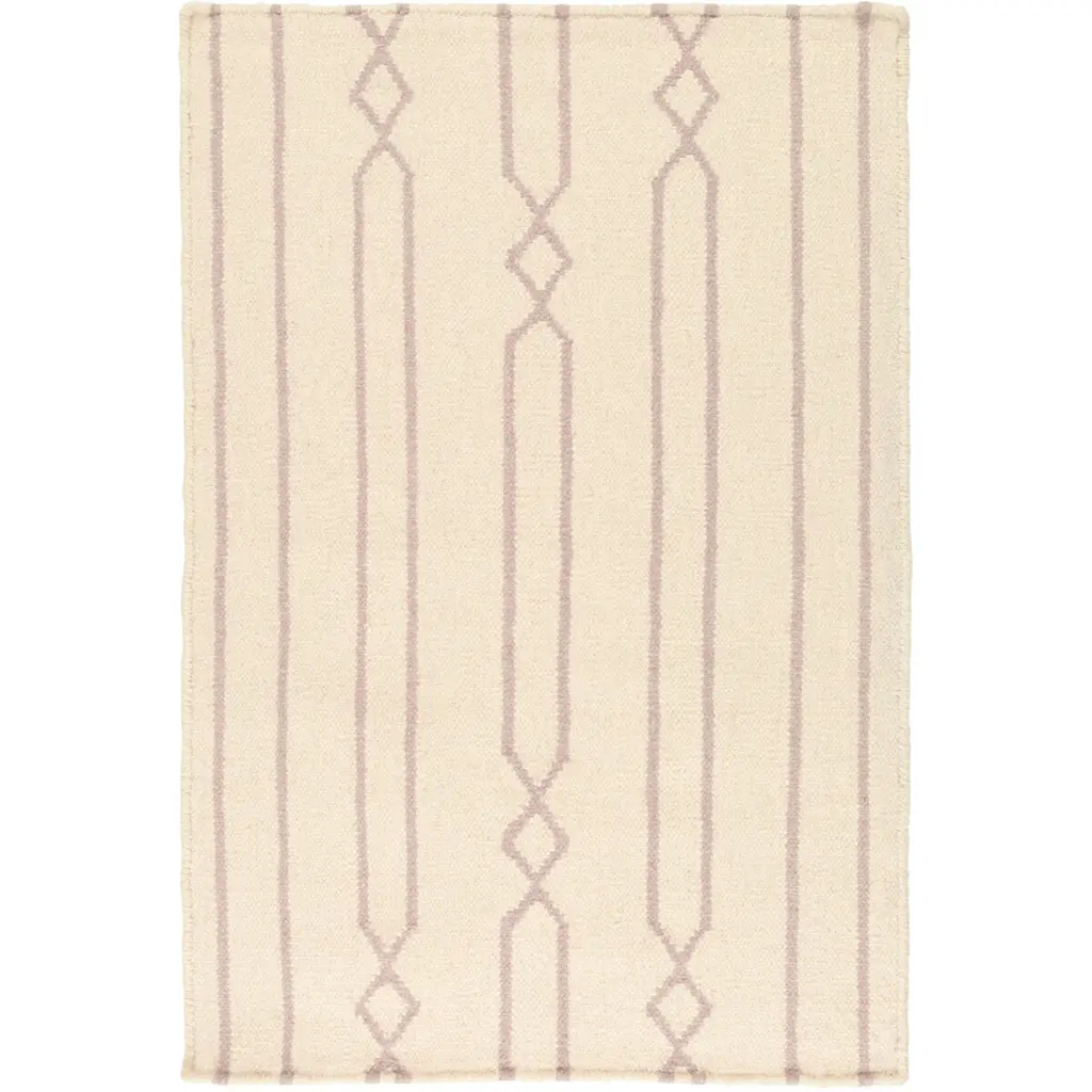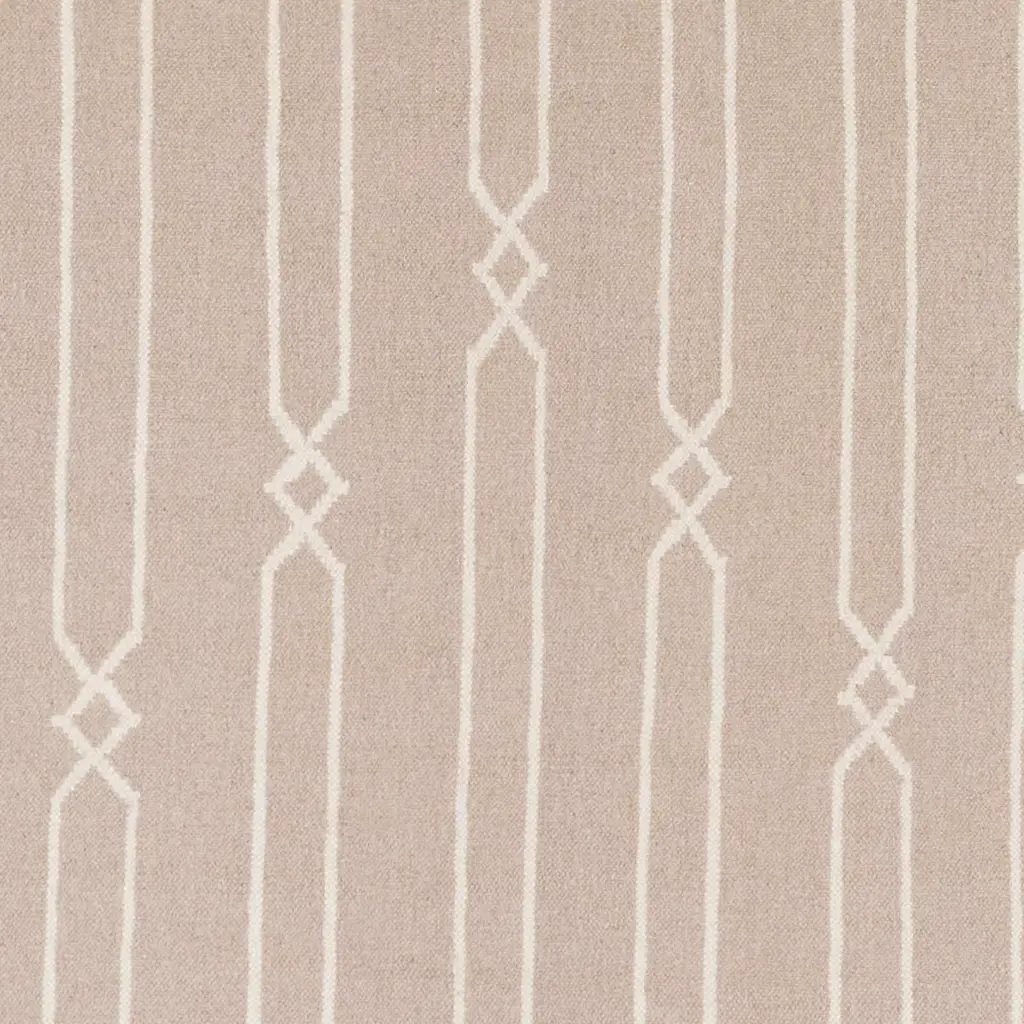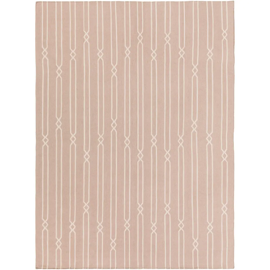Collection: Oundle Colors: Gray, Peach Construction: Hand Woven Material: 100% Wool Pile: No Pile Styles: Contemporary Made In: India Thickness: 0.16" Price Range: $$$$$ (Most Affordable)