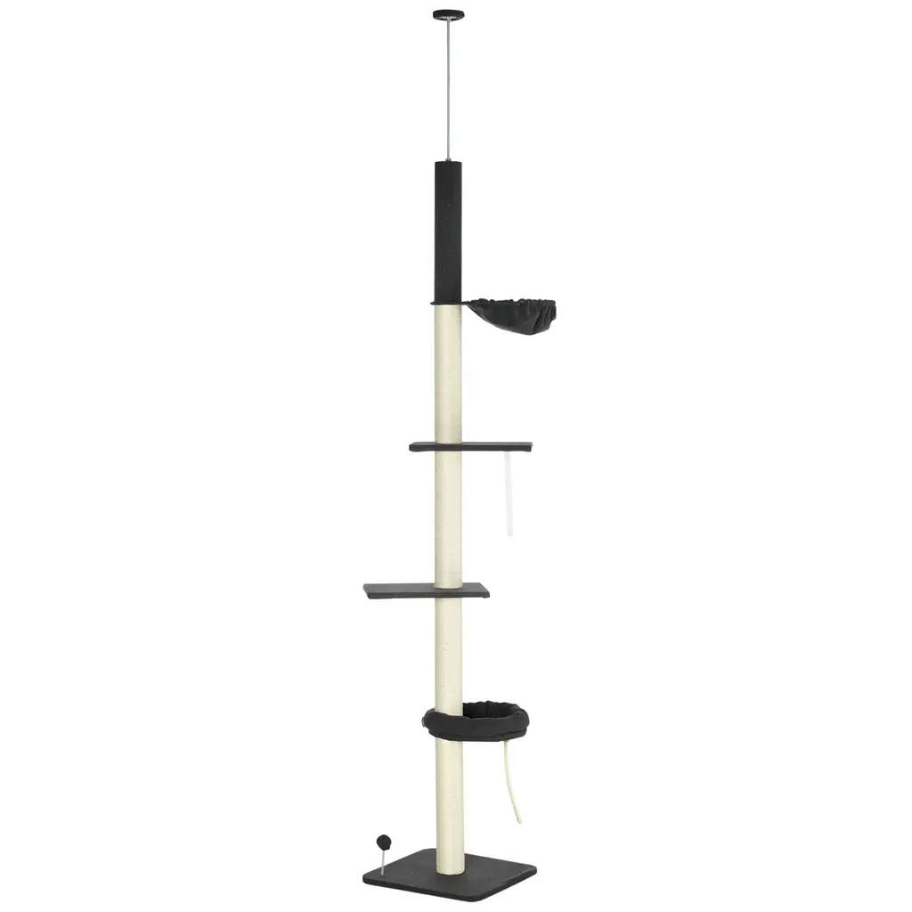 Pawhut Adjustable Height Floor-To-Ceiling Vertical Cat Tree With Carpet Platforms, Condo & Rope Scratching Areas, Dark Grey - Gray