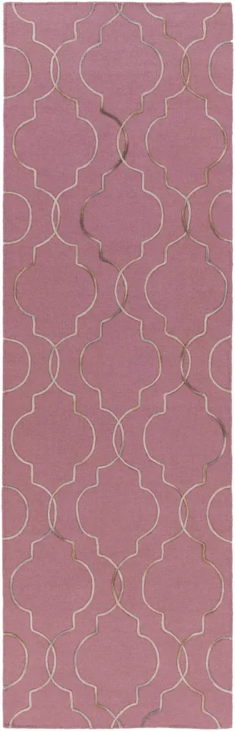 Collection: Pickrell Colors: Beige, Dark Pink, Dark Red Construction: Hand Woven Material: 100% Wool Pile: No Pile Styles: Transitional Made In: India Thickness: 0.2" Price Range: $$$$$ (Most Affordable)