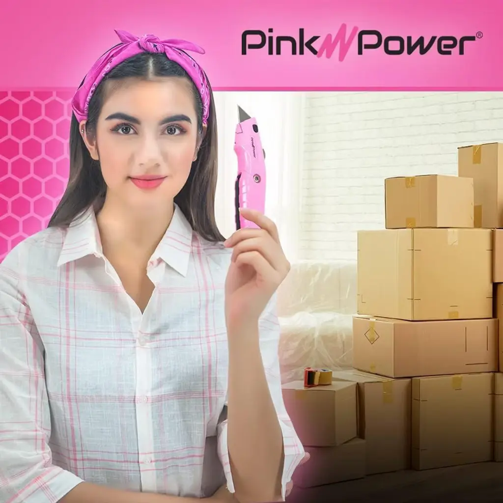 Pink Power's PP209 Utility Knife is a versatile and essential tool in any tool kit. Each utility knife includes 3 SK5 blades and has a blade storage feature to store your blades inside the knife for easy access. The knife is perfect for opening boxes and plastic packaging, cutting drywall, removing unneeded paint or caulk, or working on craft projects. Changing blades is easy with this utility knife. INCLUDES 3 BLADES Includes three SK5 high carbon steel replacement blades. Great for cutting through leather, paper, cardboard, rope, and soft metals. BLADE STORAGE COMPARTMENT Store your blades inside the knife for easy access. Each box cutter comes with a compartment within the hand of the knife that holds up to 3 blades. RETRACTABLE SWITCH The retractable switch allows you to control the blade depth with three-blade positions. Whether you're cutting paper, cardboard or carpet, you'll have the control you need to make an even cut. QUICK-RELEASE BLADE BUTTON Quickly and easily switch out blades with the quick release blade button located on the top of the unit.