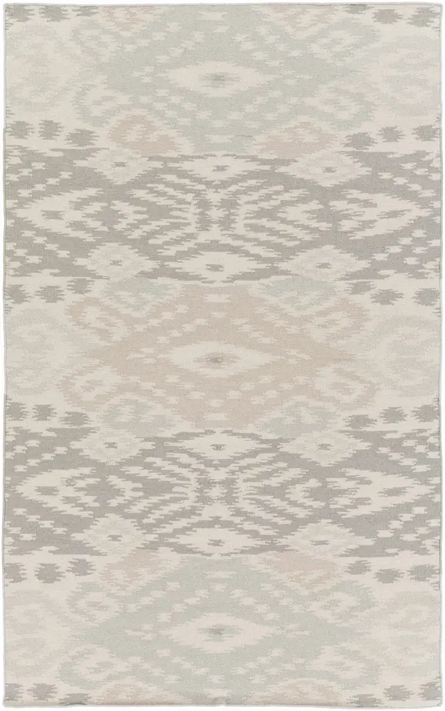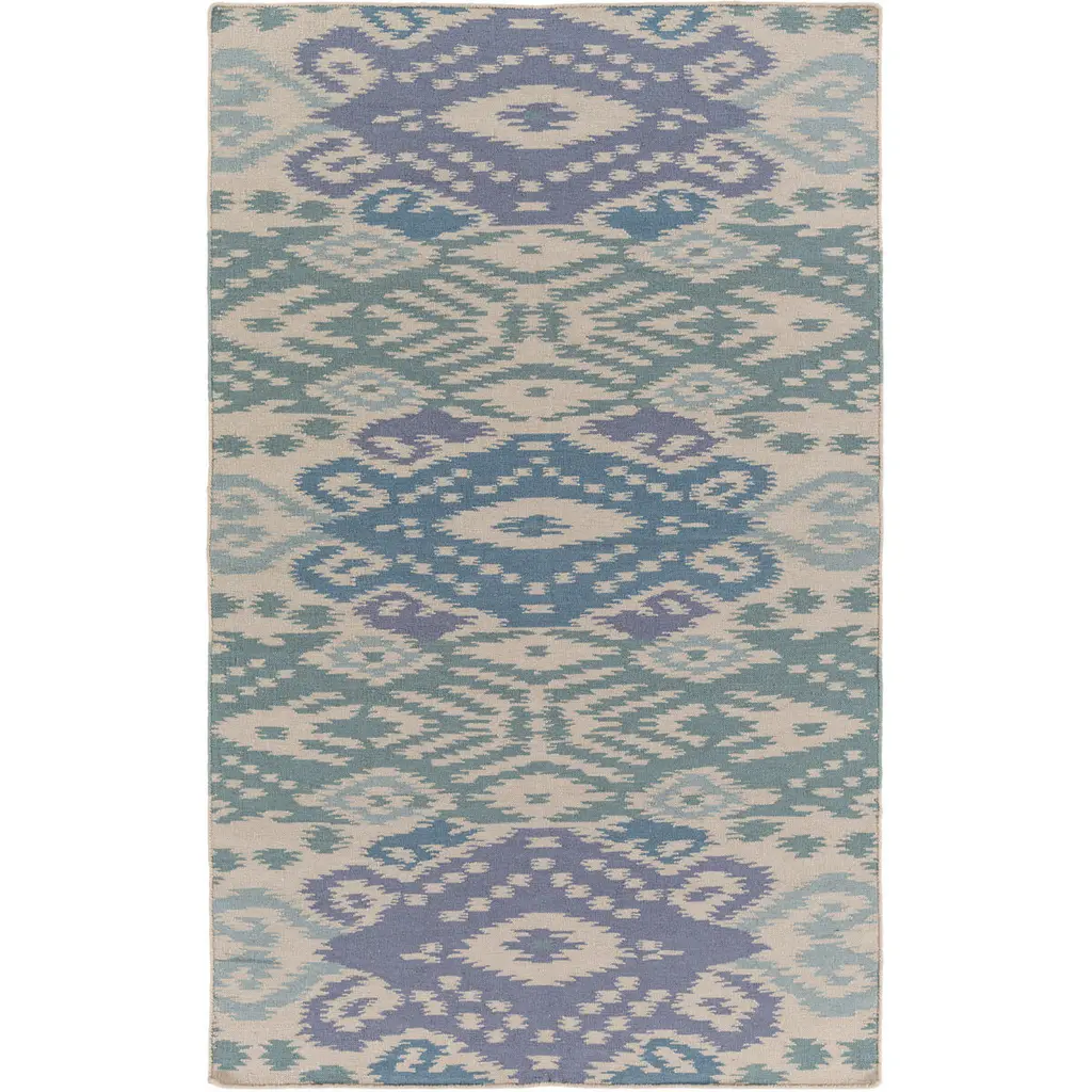 Collection: Prunedale Colors: Denim, Medium Gray, Blue, Light Gray, Sky Blue Construction: Hand Woven Material: 100% Wool Pile: No Pile Styles: Bohemian/Global Made In: India Thickness: 0.16" Price Range: $$$$$ (Affordable)