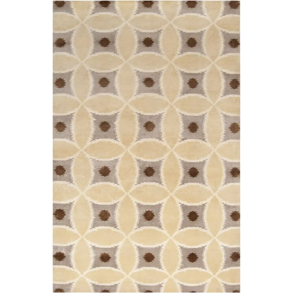 Collection: Rindge Colors: Dark Brown, Ivory, Mustard, Dark Red Construction: Hand Knotted Material: 100% Wool Pile: Medium Pile Pile Height: 0.31" Made In: India Thickness: 0.39" Price Range: $$$$$ (Affordable)