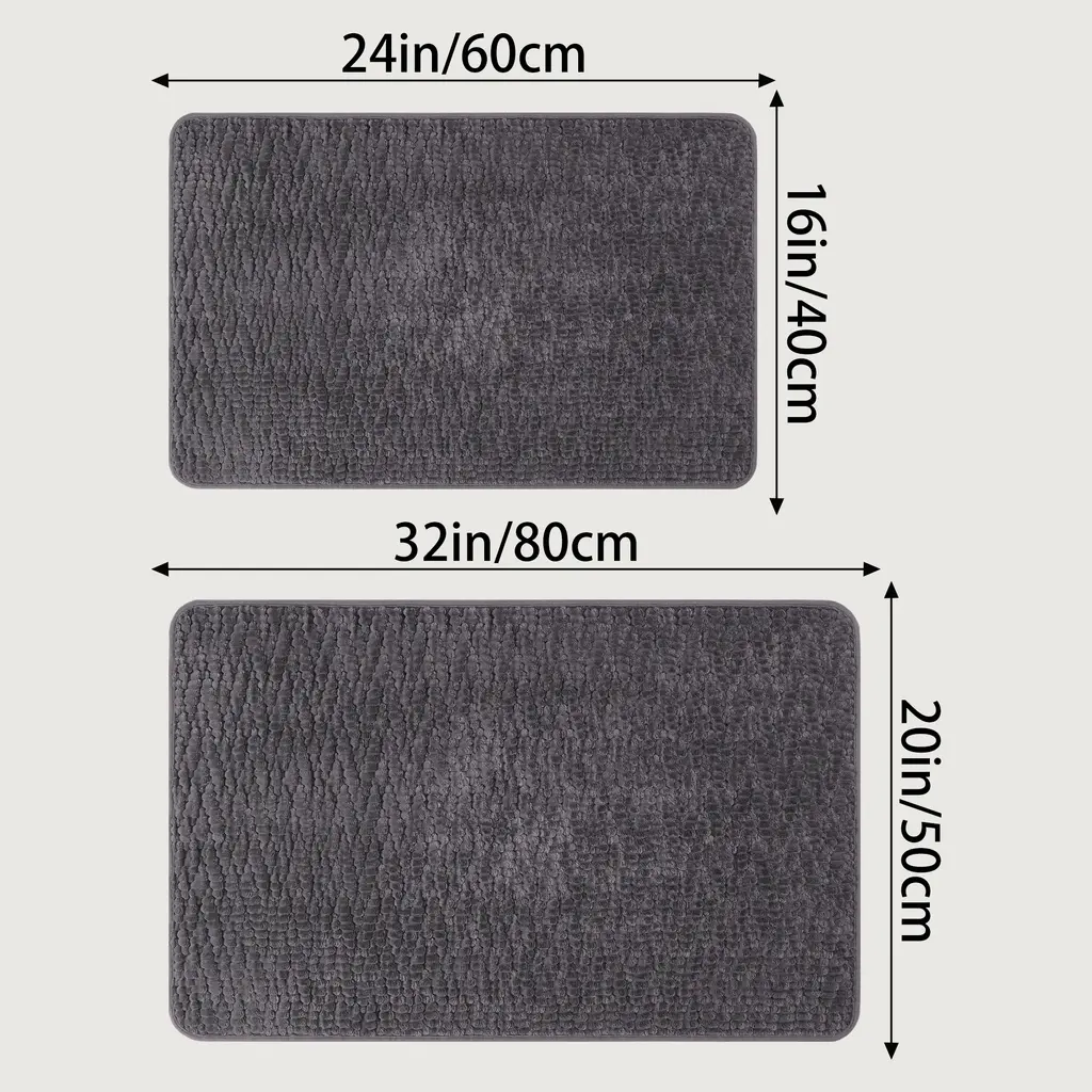 Non-Slip Backing: Our bathroom mats are equipped with a non-slip rubber backing to prevent shifting and skidding, while preventing water from seeping through to the soft surface, ensuring safety in your bathroom.Absorbent and Quick-Drying: Our bath mat is constructed with a soft fabric that effectively absorbs water when stepping out of the bath, shower, or getting ready by the sink. The mat's deep pile efficiently traps moisture, allowing it to dry quickly and keep your rug clean and dry.Versatile Use: The bath rug serves as a stylish and luxurious enhancement to your daily routine. Whether placed by the tub, shower, or sink, savor the soft opulence underfoot and elevate your bathing experience with timeless elegance.Attractive Appearance : With many different colors and sizes to choose from, you will easily find rugs to coordinate with your decor!Easy To Clean: This bath rugs have the advantages of staying in place firmly, easy to storage, holding up to multiple machine washes and dry. The colors remain vibrant even after numerous washes, ensuring long-lasting beauty and functionality.