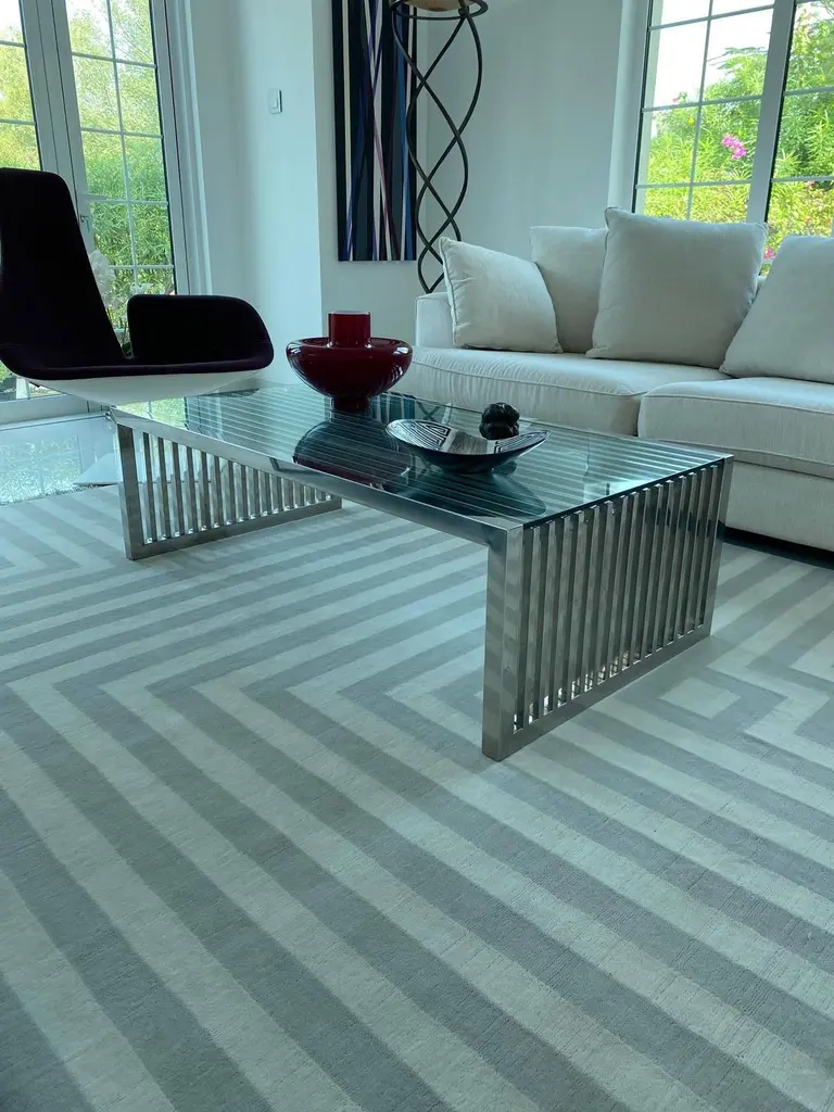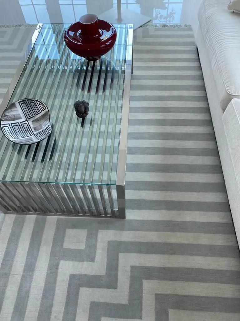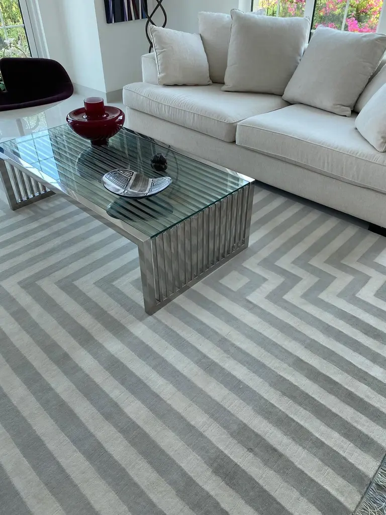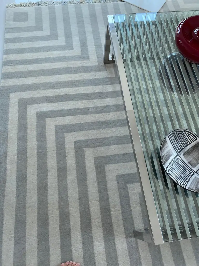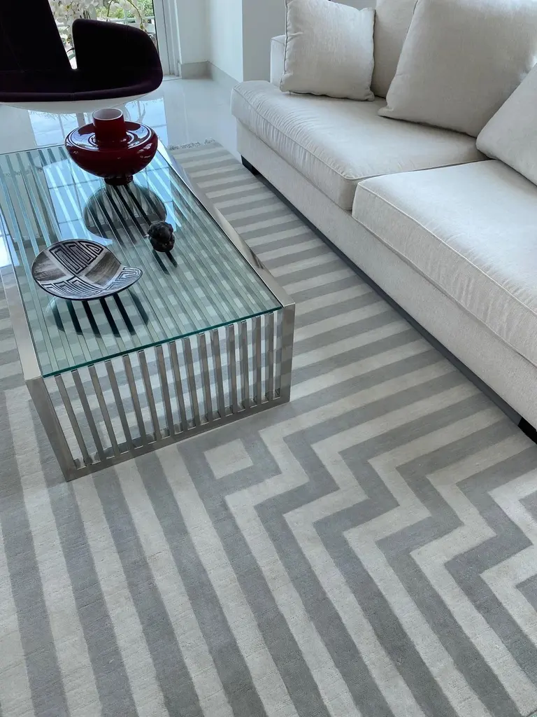 Rug Stripes Minimalist Modern Wool Carpet Geometric Light Grey Cream Neutral