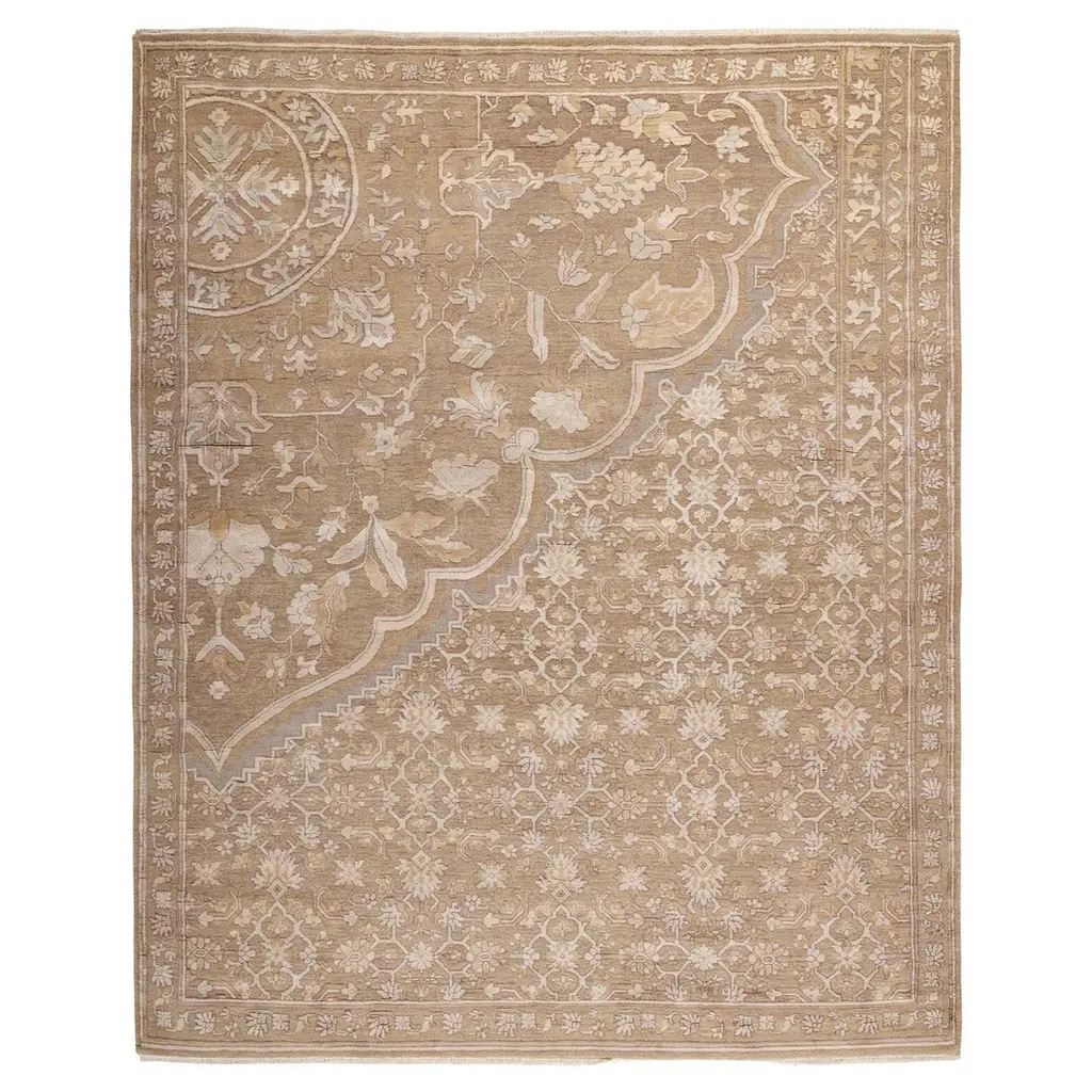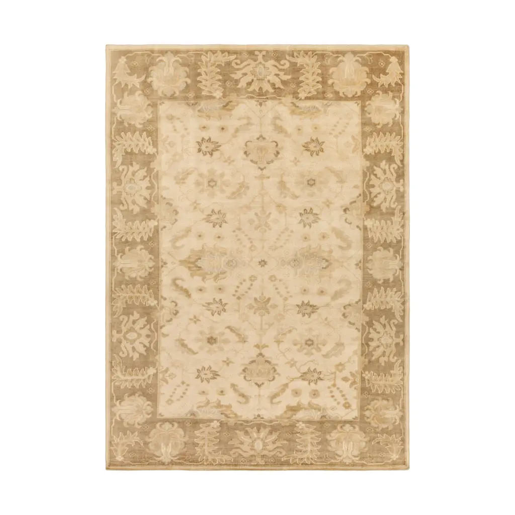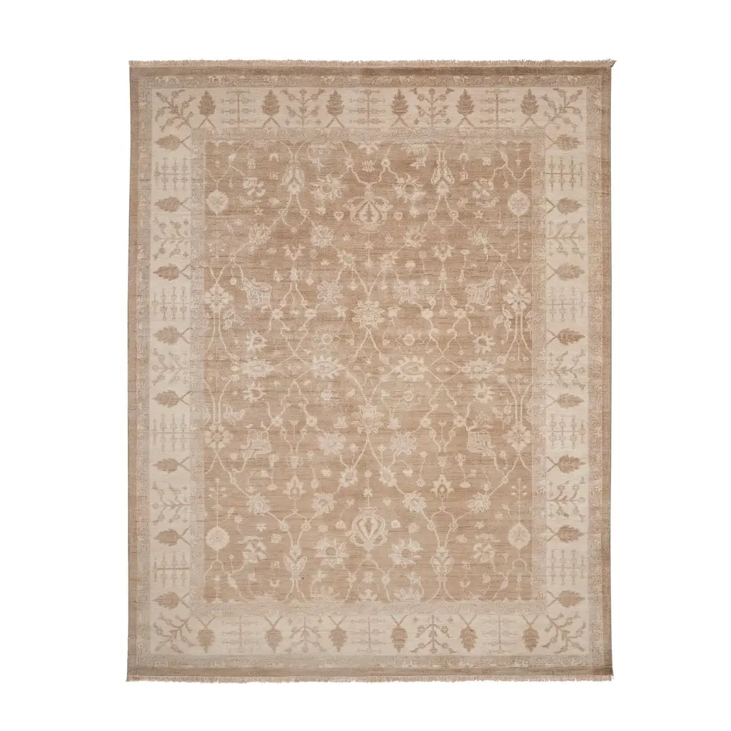 Collection: Schererville Colors: Tan, Light Brown, Dark Red Construction: Hand Knotted Material: 100% NZ Wool Pile: Low Pile Pile Height: 0.2" Styles: Traditional Made In: India Thickness: 0.4" Fringe Length: 1" Price Range: $$$$$ (Premium)