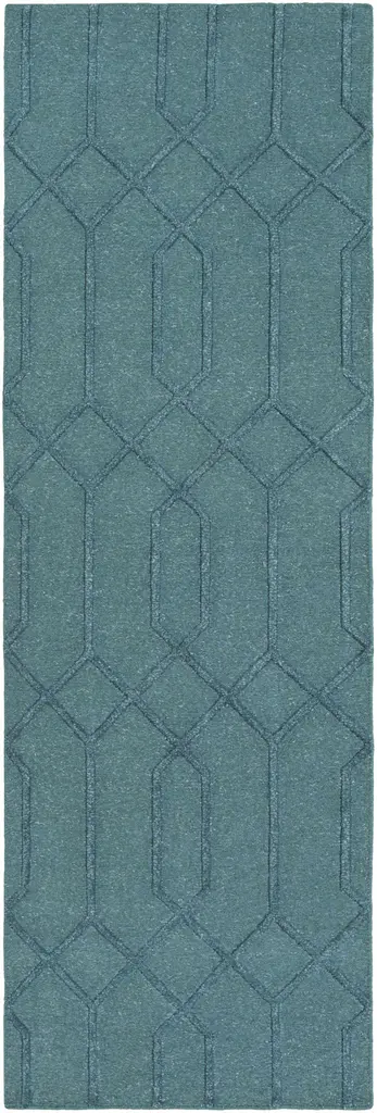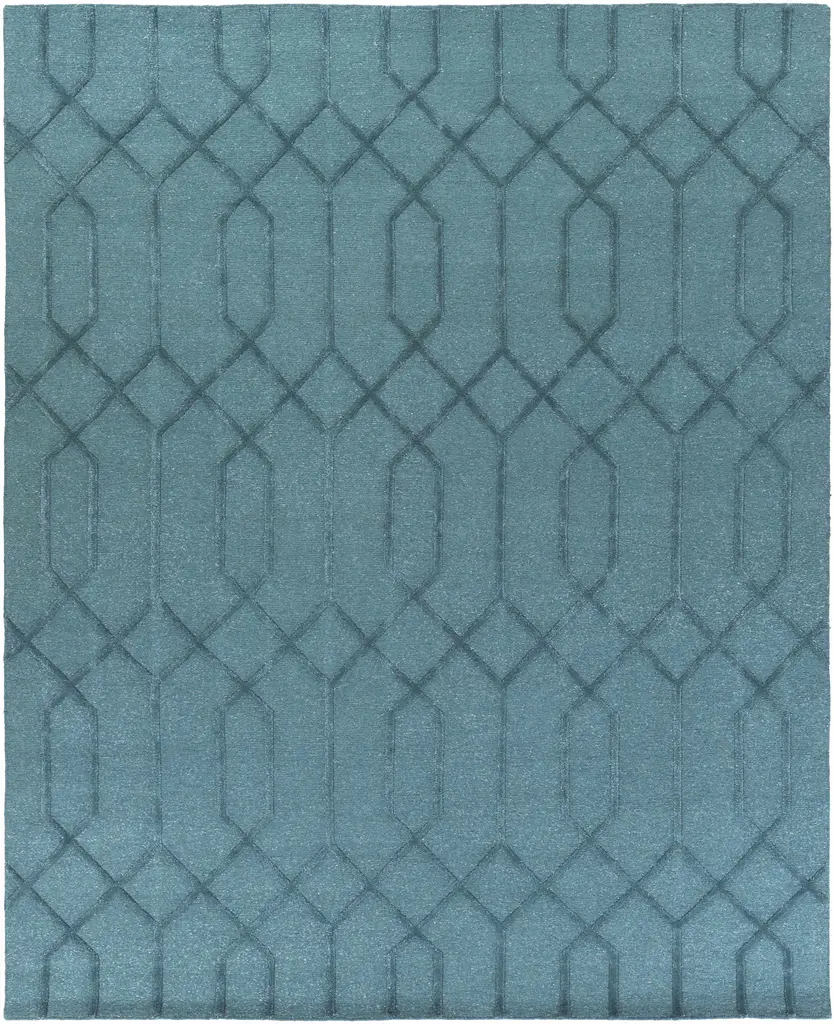 Collection: Sharps Colors: Teal Construction: Hand Knotted Material: 100% Wool Pile: Medium Pile Pile Height: 0.31" Styles: Contemporary Made In: India Thickness: 0.39" Price Range: $$$$$ (Affordable)