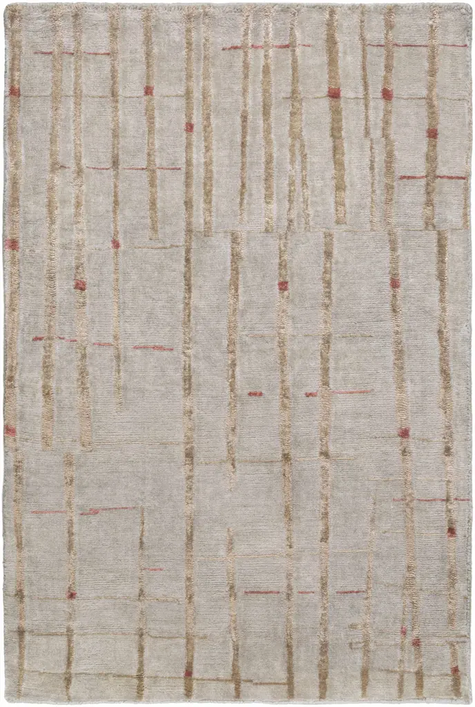 Collection: Slatington Colors: Light Gray, Dark Brown, Red Construction: Hand Knotted Material: 70% NZ Wool,30% Viscose Pile: Medium Pile Pile Height: 0.31" Styles: Contemporary Made In: India Thickness: 0.39" Price Range: $$$$$ (Premium)