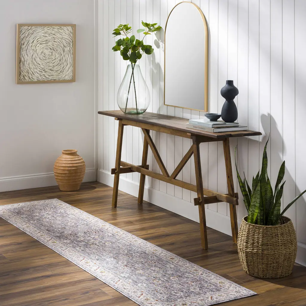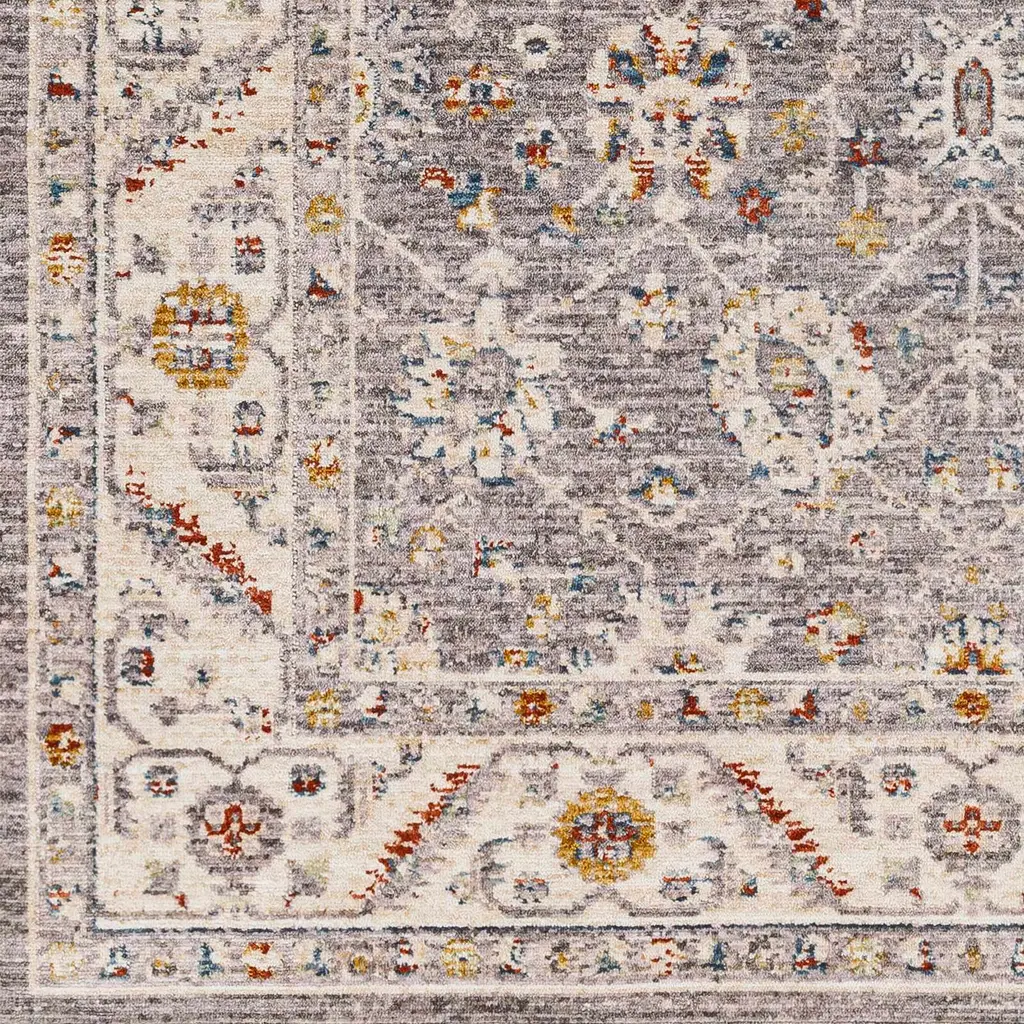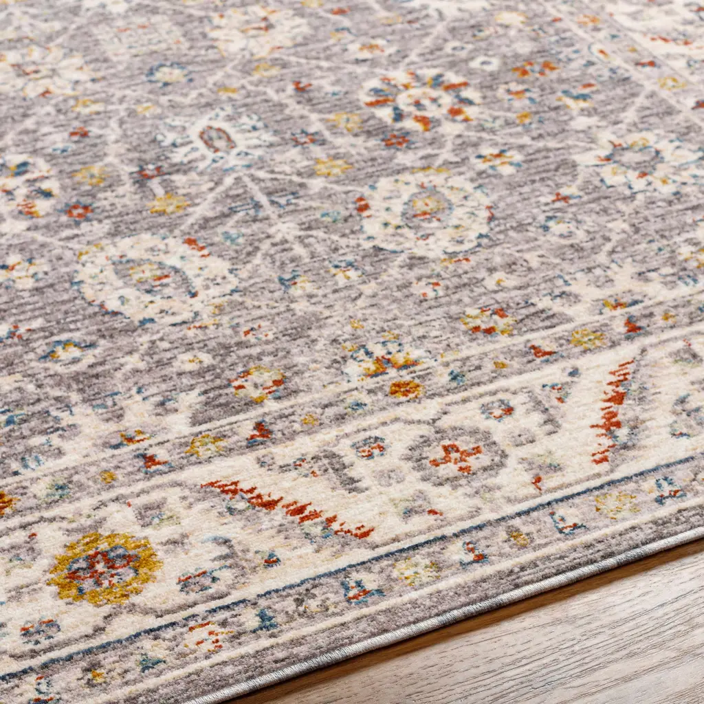 Collection: Sosi Colors: Charcoal, Ivory, Mustard, Blue, Medium Green, Rust Construction: Machine Woven Material: 100% Polyester Pile: Medium Pile Pile Height: 0.24" Styles: Traditional Backing: Canvas Made In: Turkey Thickness: 0.35" Fringe Length: 4.3" Price Range: $$$$$ (Most Affordable)