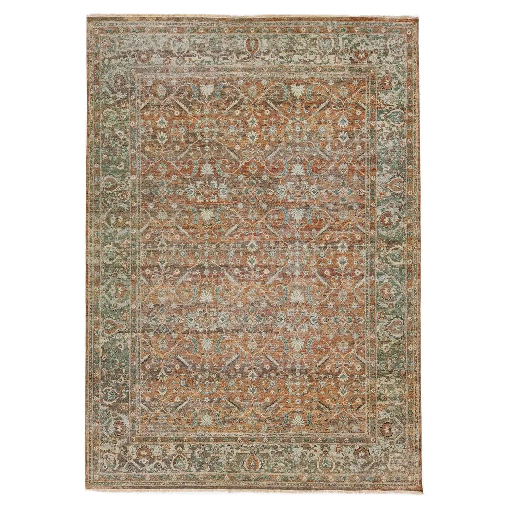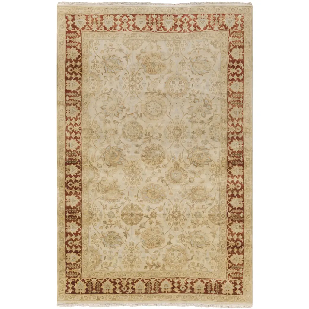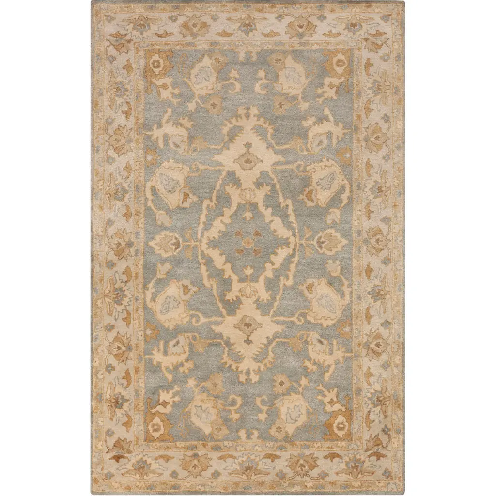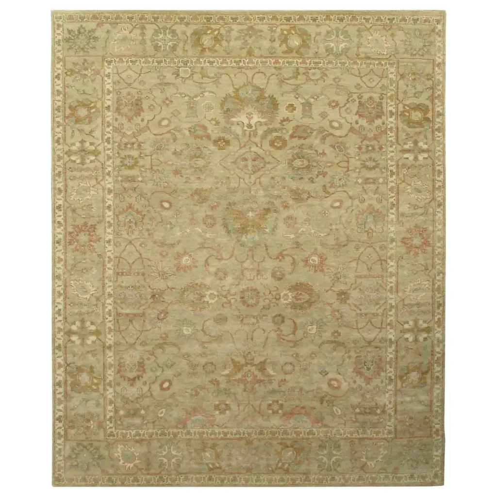 Collection: Springerville Colors: Peach, Tan, Medium Gray, Beige, Blue, Mustard, Pale Pink Construction: Hand Knotted Material: 100% NZ Wool Pile: Medium Pile Pile Height: 0.39" Styles: Traditional Made In: India Thickness: 0.47" Price Range: $$$$$ (Premium)
