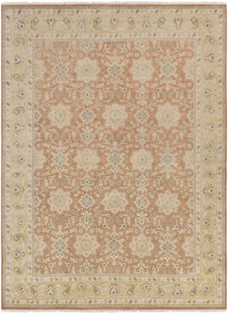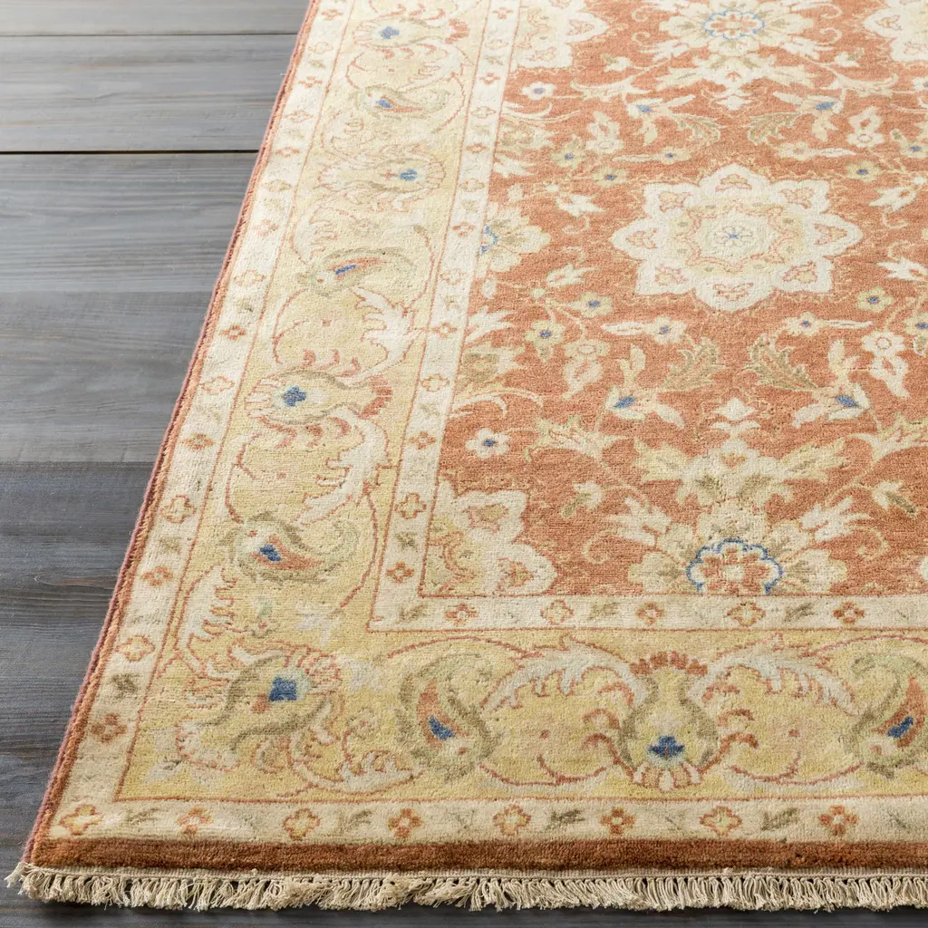 Collection: Springerville Colors: Peach, Tan, Medium Gray, Beige, Blue, Mustard, Pale Pink Construction: Hand Knotted Material: 100% NZ Wool Pile: Medium Pile Pile Height: 0.39" Styles: Traditional Made In: India Thickness: 0.47" Price Range: $$$$$ (Premium)