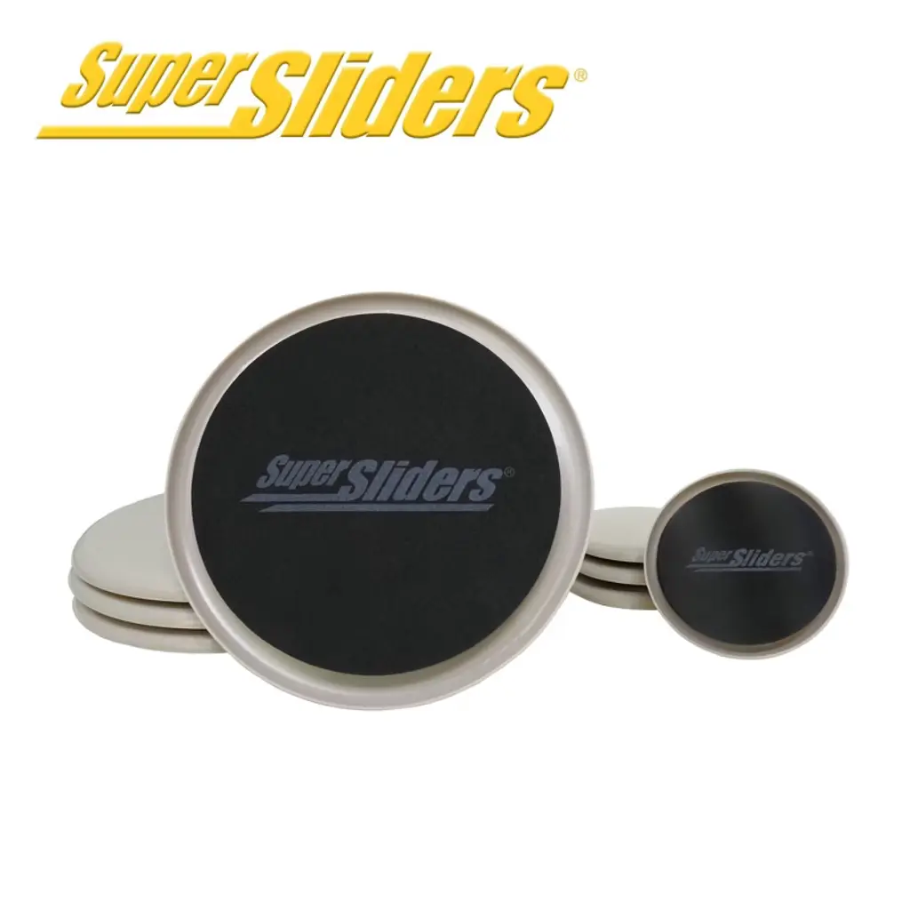 Make moving furniture effortless across any surface with this 4-pack of Super Sliders 5-inch reusable furniture sliders with removable fabric socks. Designed to glide heavy furniture with ease, these dual-surface sliders are perfect for moving items across both carpet and hard floors—without scratching or scuffing your surfaces.Whether you're rearranging the living room, cleaning under a large sofa, or setting up for a get-together, these sliders help reduce strain on your body and protect your flooring. Use the hard plastic base directly on carpet, or slip on the fabric socks for smooth, damage-free movement on hardwood, tile, laminate, and more.Keep a set on hand for big moves, small adjustments, and everything in between—these reusable sliders make furniture rearrangement a one-person job.