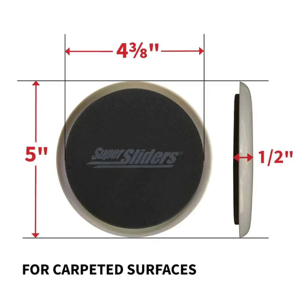 Supersliders 4Pk 2-in-1 Reusable 5'' Furniture Carpet Sliders
