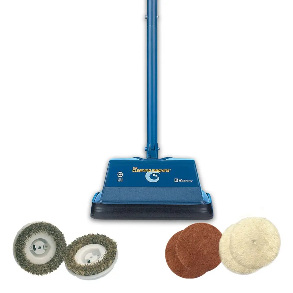 Achieve cleaner hardwoods and carpeting with the Thorne Electric Koblenz Cleaner. This heavy duty Cleaning Machine from Koblenz scrubs and polishes hard floors including hardwood floors and also shampoos carpets. This machine features rotating brushes and a T-bar handle. Details: 18 foot cord 25 inches x 12 inches x 11 inches Model number 00-6025-1Includes:1 pair of scrubbing brushes1 pair of shampoo brushes1 pair of green scrubbing pads1 pair of tan polishing pads1 pair of lambswool buffing pads