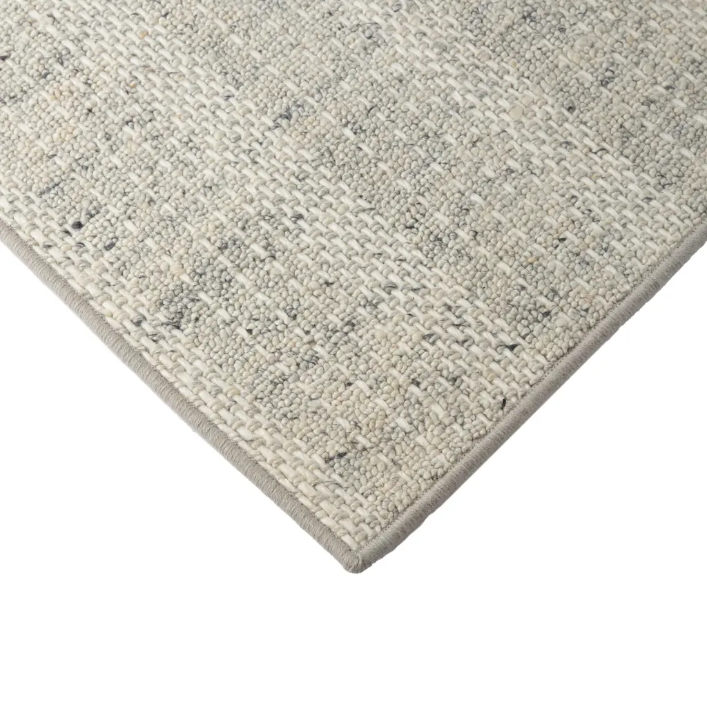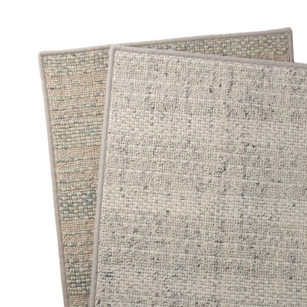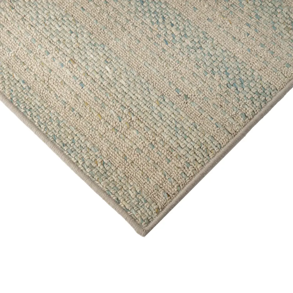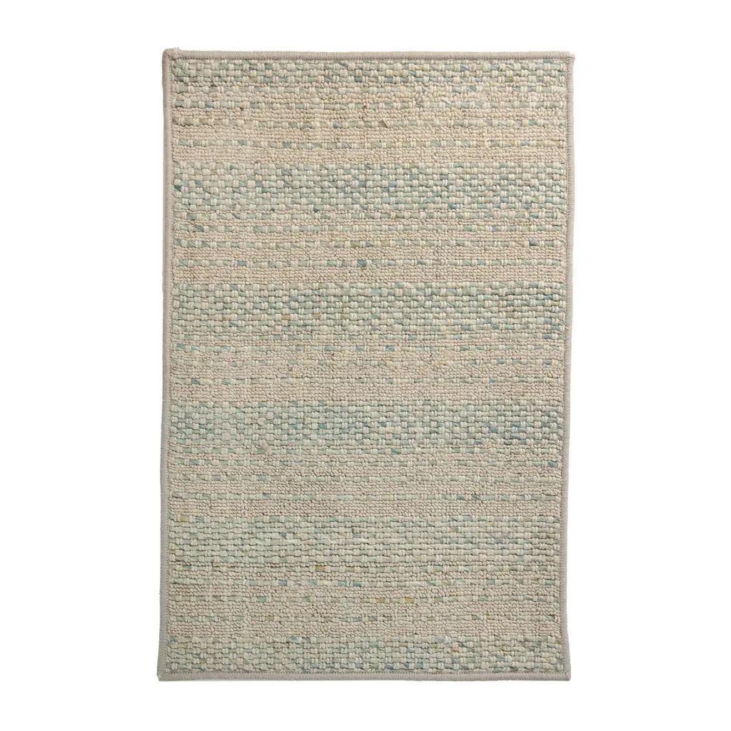 This Threadline Custom carpet from India is a hand-loomed beauty showcases a mix of horizontal stripe patterns. The coarse texture and sturdy weave create a subtle checked design, made from 70% wool and 30% polyester for lasting quality.