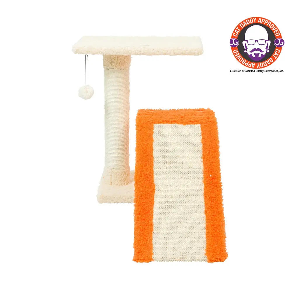 Description :Watch your feline go up and down with a kick in their step. The two-level Premium cat tree comes with a platform scratcher. Ideal for small cats, 1~2 kittens. F and B Bullet:. Beige, 2-level small cat scratcher, with high density and Ultra-Thick Faux Fur for felines comfort and soft, coverings are permanently adhered to wood structures. Well constructed of 15mm pressed wood material, making it not only thicker but stronger, and keep the cat tree in shape. Mixed sisal and carpet scratching surfaces with angles to satisfy your cat's need to scratch. 100% natural, seasoned sisal rope wraps all posts securely for years of "scratch. Maximum Holding Weight: 15 lbs. Product Size: Overall Dimensions:21"(L) x 19"(W) x 27"(H) What in Included: Hardware set, Instruction, cat tree Fabric Care: Spot clean Color: Beige and Orange