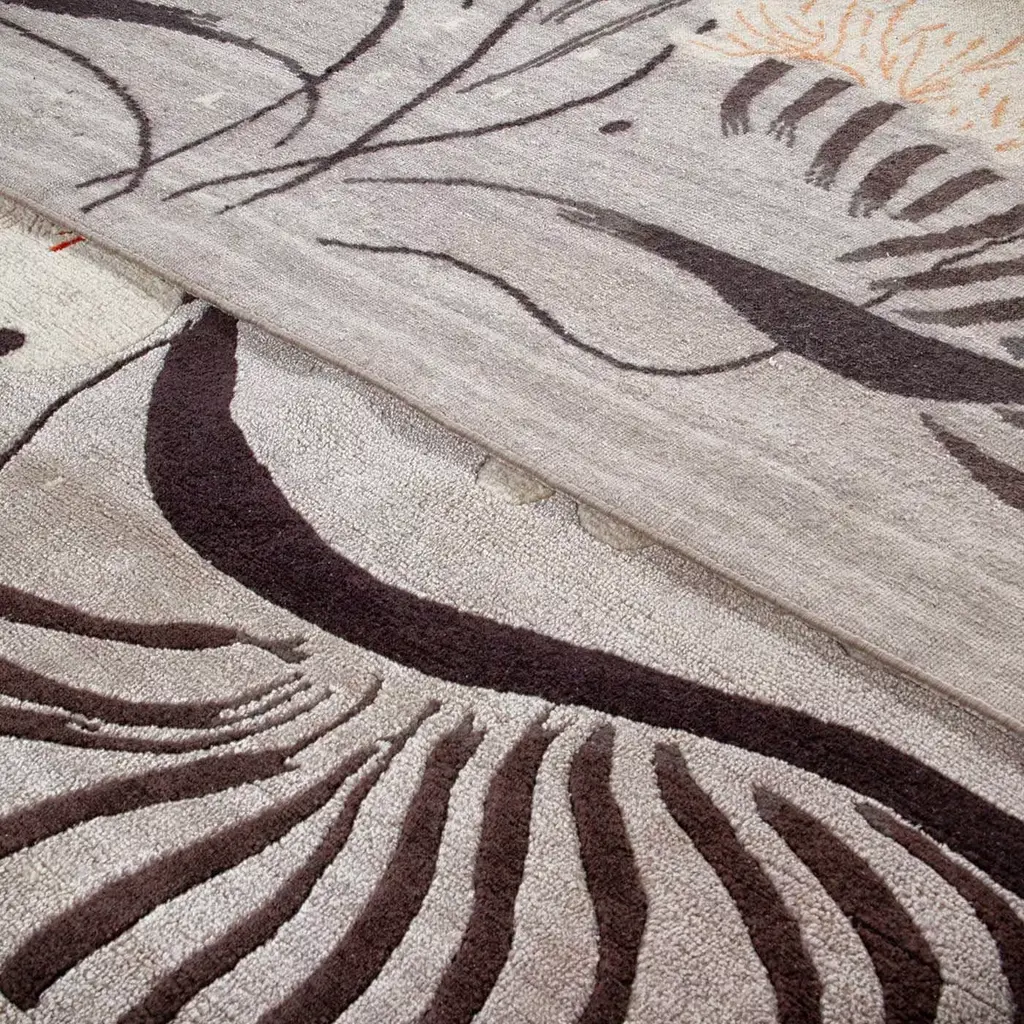 The elegant and sinuous lines designed by René Gruau for Fede Cheti represent a modern floral motif inspired by traditional Japanese prints. The Valparaise rug, available in two color variations – white and yellow – is the result of the elaboration of the Artist’s beloved subjects and their translation into a refined and unmistakable artifact. The carpet is made of New Zealand wool (70%) and pure silk (30%).