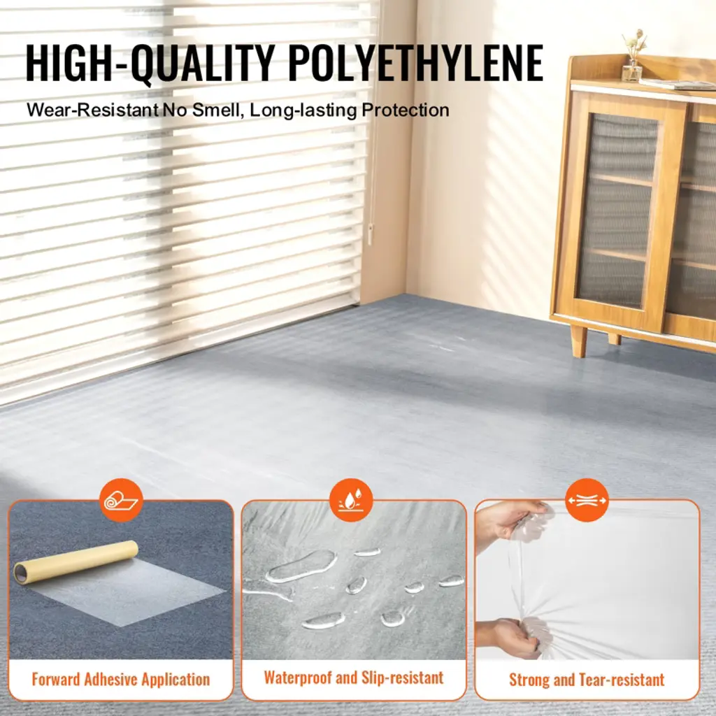 Vevor Carpet Protection Film, 24" X 100' Floor And Surface Shield With Self Adhesive Backing & Easy Installation, Polyethylene Adhesive Car Mat