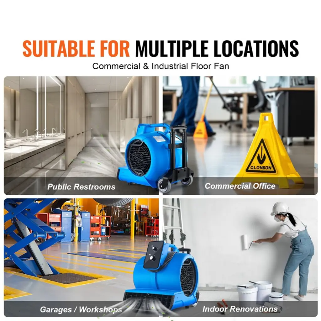 Vevor Floor Blower, 1560 Rpm 4000 Cfm, Air Mover For Drying And Cooling, Portable Carpet Dryer Fan With 3 Blowing Angles, Timer, 3-speeds Adjustment