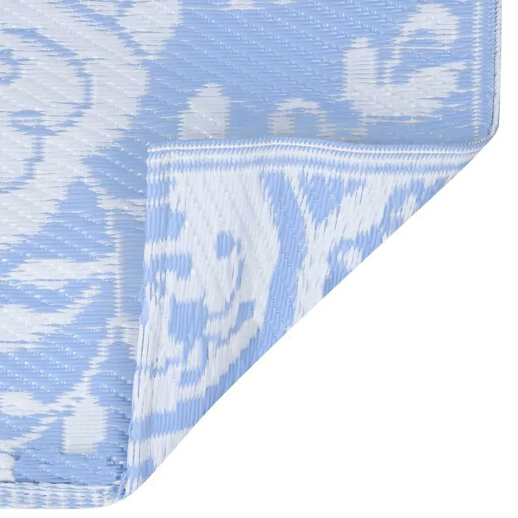 This outdoor carpet in baby blue really amps up your balcony or patio. With its generous size of 63 in by 90 in, it not only brings some color but also makes the outdoors more inviting, perfect for chilling and relaxing. Weather-Resistant: This carpet is perfect for all sorts of weather. Whether it’s sunny or raining, it holds up well and keeps its bright color, making your outdoor space look fab all year round.Unique Pattern: The lovely double layer jacquard pattern adds elegance to your outdoor decor. This cool design fits nicely with modern styles and makes a statement.Textured Finish: The textured surface not only looks great but feels comfy underfoot too. It enhances the overall experience, making it perfect for gatherings or chill-out time.Sturdy Material: Made from good quality polypropylene, this carpet is built to last and easy to look after. It can handle heavy foot traffic and is easy to clean, so it’s practical for your outdoor areas.Ideal Size: At 63 in x 90 in, it's roomy enough for outdoor furniture or can be a standout decorative piece. This size suits balconies, patios, or terraces, giving you enough space without crowding.