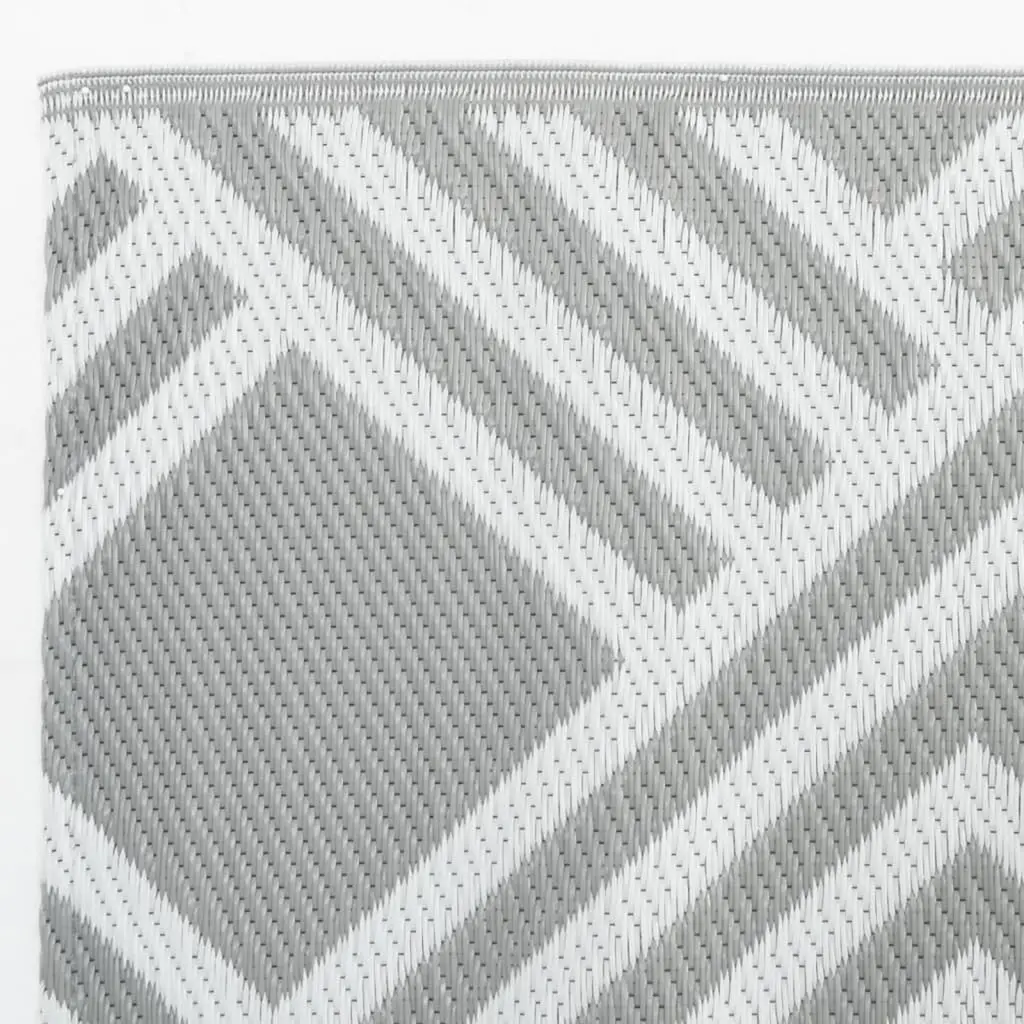 This outdoor carpet is a stylish geometric treat, made in a chic grey shade that's just right for any outdoor area. It brings a modern flair, enhancing your balcony, terrace, or garden while keeping things comfy underfoot. Durability: Made from UV-resistant polypropylene, this carpet stands up to strong sunlight without fading, so it stays vibrant for years. Reversible Design: The double-layer jacquard pattern gives you options to change your outdoor style as you please. Lightweight Construction: Super easy to carry, perfect for folks who like to rearrange their outdoor scene or bring it along on adventures. Hand washable: Cleaning is a breeze; just hand wash it and let it dry naturally to keep it looking great. Multi-Functional Use: Great for patios, gardens, or balconies, it really adds to relaxed settings or spots where you want to showcase plants.